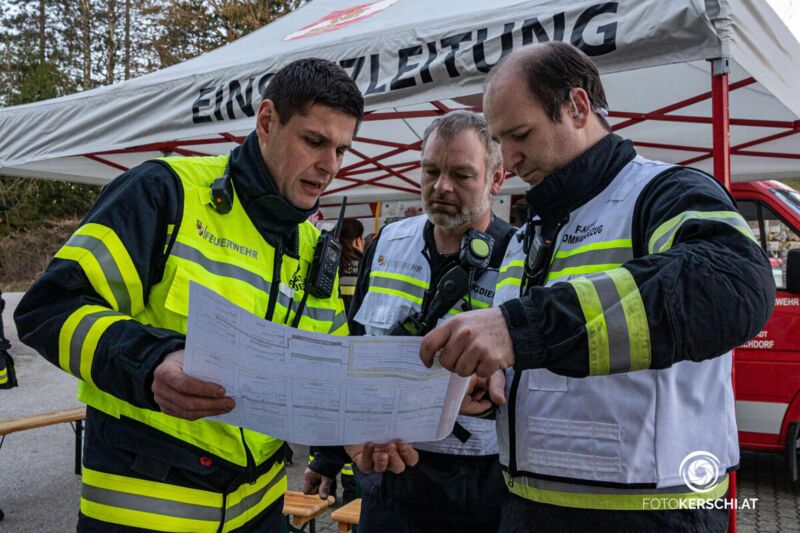 Bezirk Kirchdorf. Aktuell stehen circa 200 Einsatzkräfte verschiedener Einsatzorganisationen bei einer Großübung in Altpernstein im Einsatz.