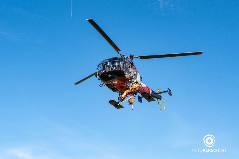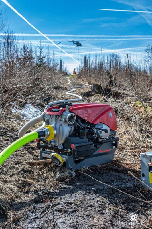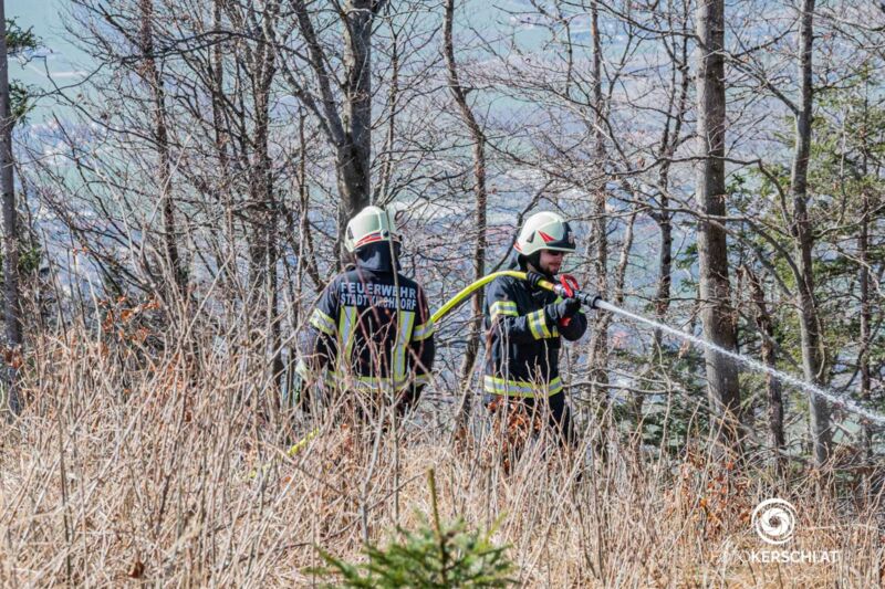 Die Einsatzkräfte üben im Bereich des Hirschwaldsteins die richtige Vorgehensweise bei einem Waldbrand in unwegsamen und steilem Gelände. Gemeinsam mit zwei Hubschraubern und der Bergrettung werden Mannschaft sowie Material auf den Berg geflogen, zeitgleich wird über eine nahegelegene Forststraße eine Zubringerleitung sowie ein Pendelverkehr mit mehreren Tanklöschfahrzeugen eingerichtet.