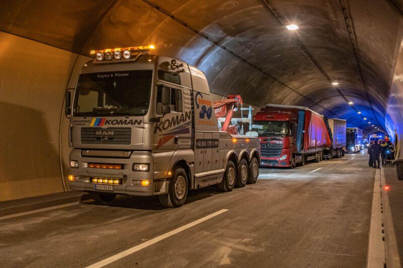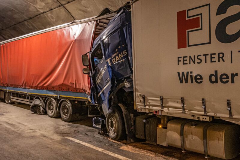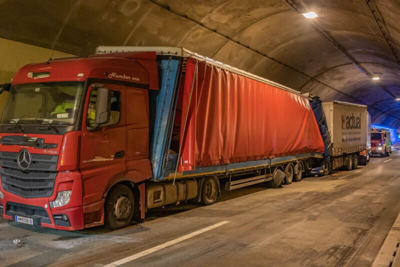 Auffahrunfall mit zwei LKW im Tunnel Spering auf der A9 sorgt für Totalsperre