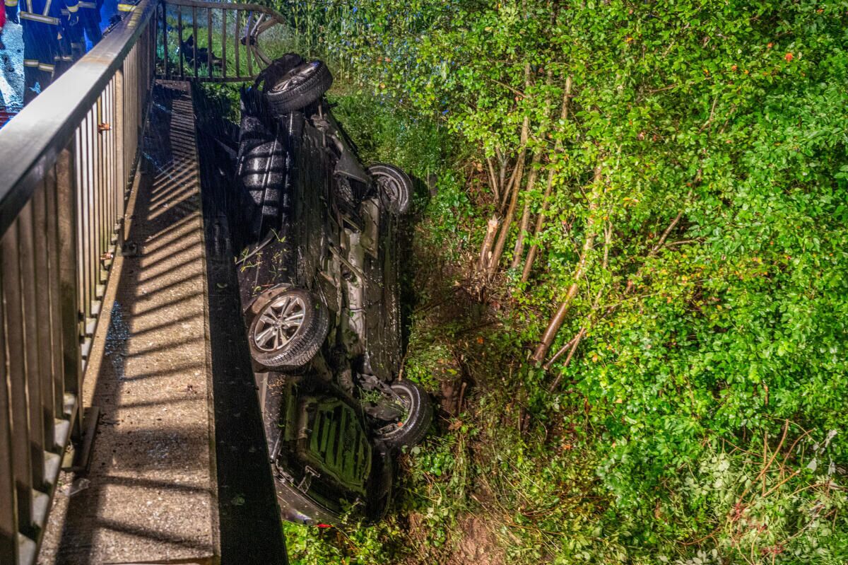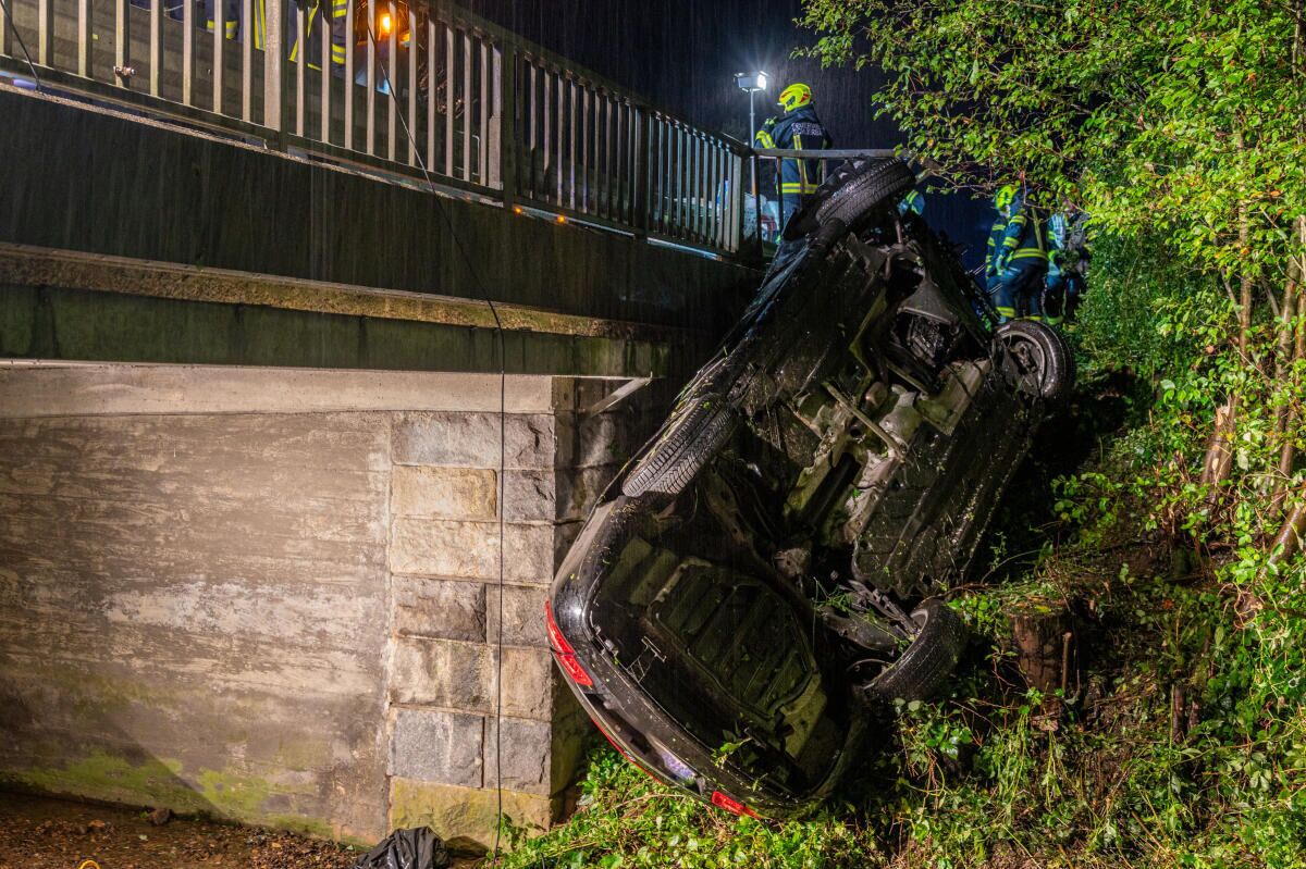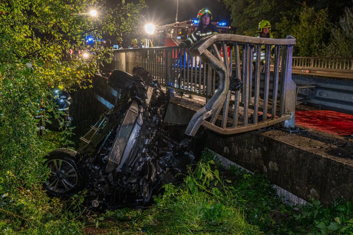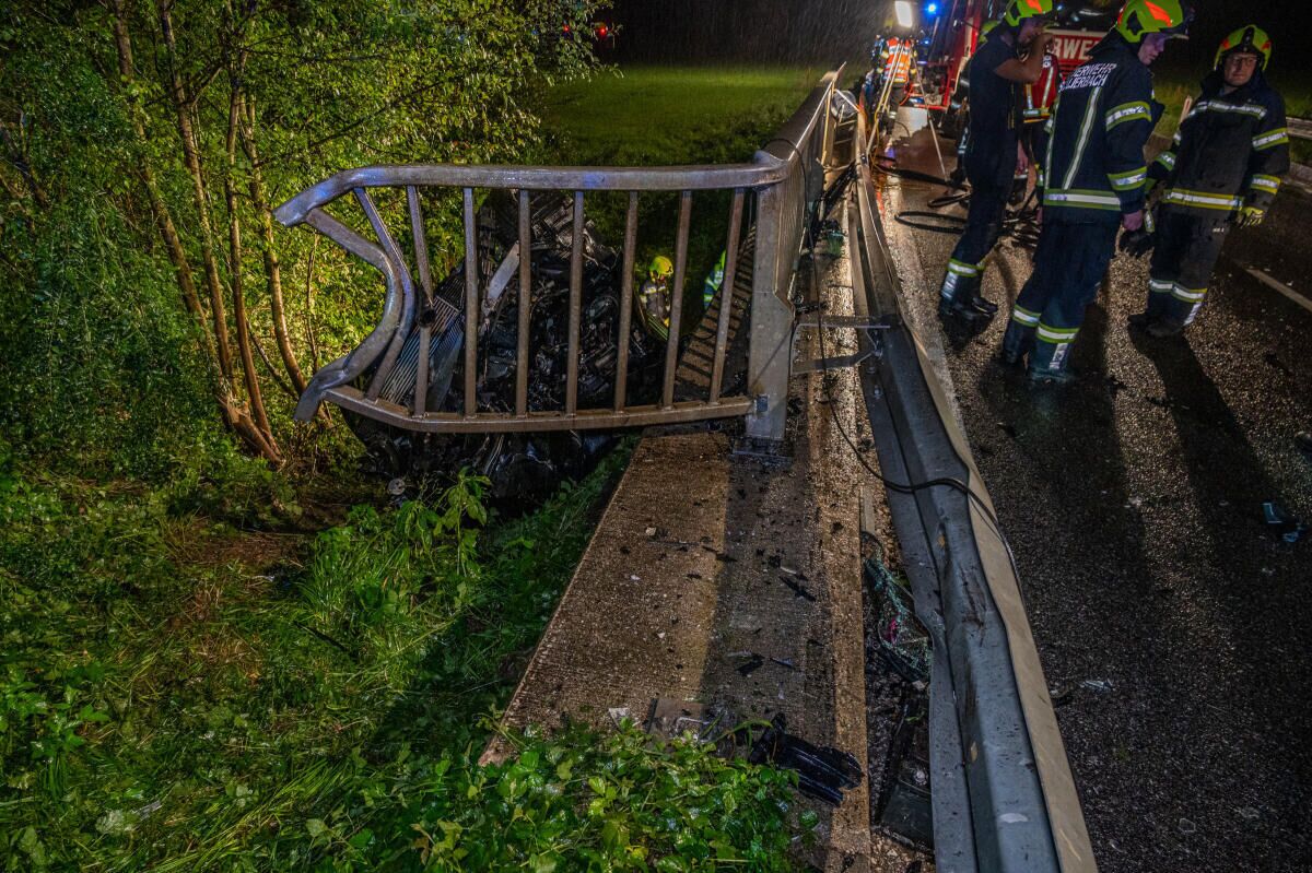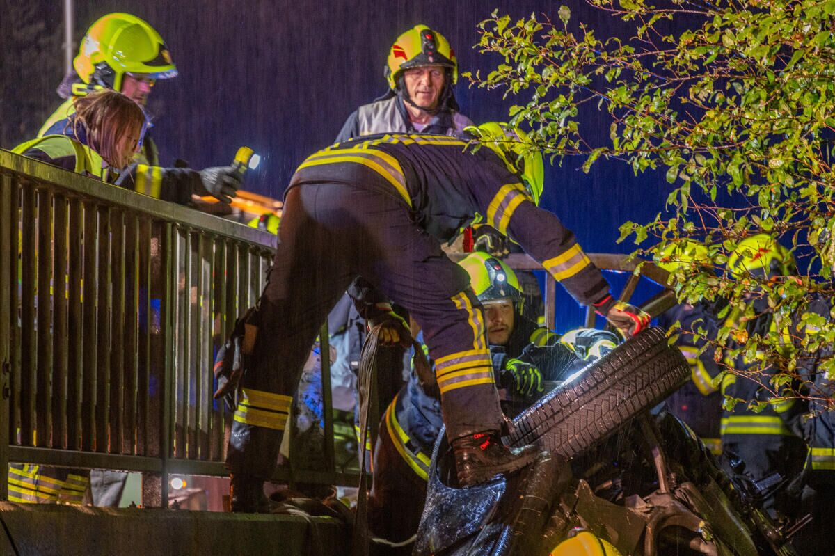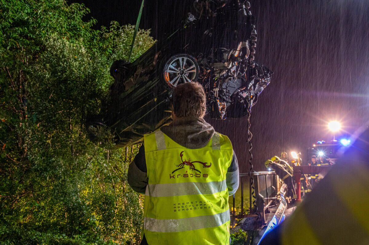 Die Frau aus dem Bezirk Grieskirchen kam aus bislang unbekannter Ursache von der Fahrbahn ab, fuhr auf die Leitplanke, kollidierte mit einem Brückengeländer, überschlug sich und kam in Seitenlage neben einer Brücke auf einer Böschung zum Stillstand. Die Feuerwehr entfernte die Heckscheibe und die Unfalllenkerin konnte das Fahrzeug eigenständig verlassen; sie wurde anschließend auf dem Spineboard über die Böschung zum Rettungsauto getragen. Ein Abschleppunternehmen und die Feuerwehr bargen das Auto. Die L554 war zwischen Schlierbach und Jageredt für 1,5 Stunden total gesperrt.