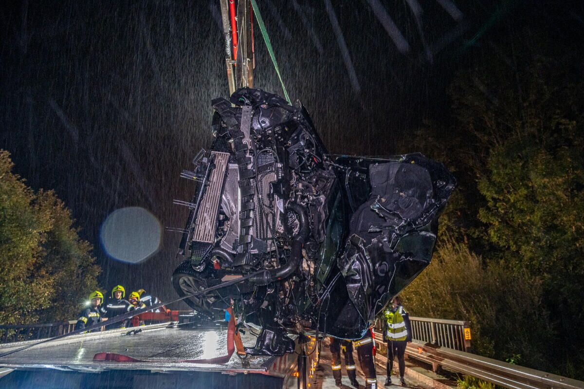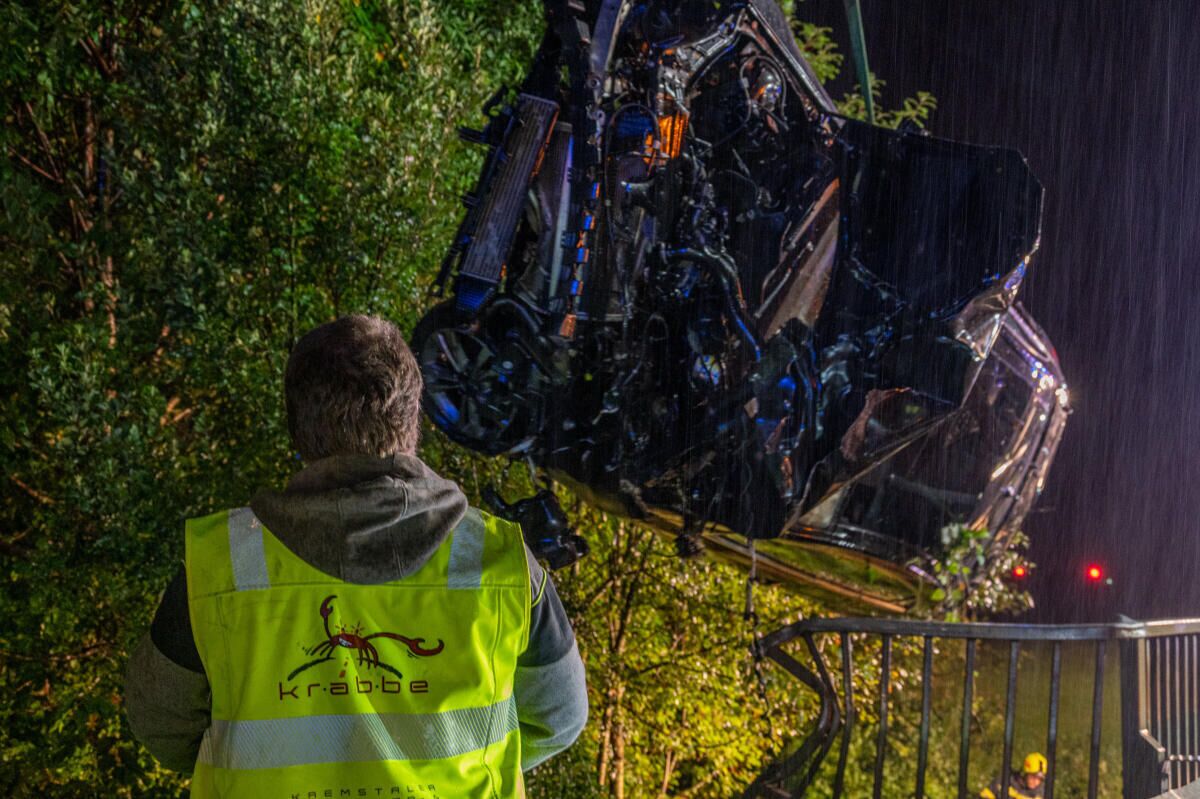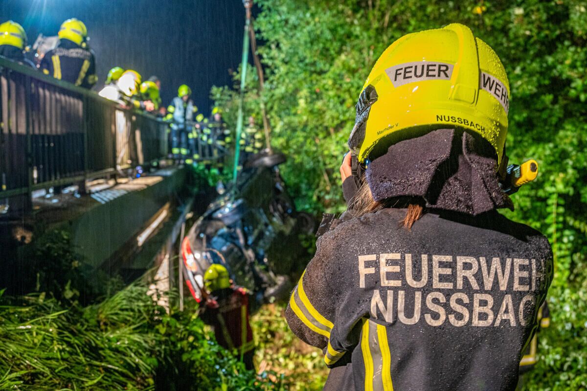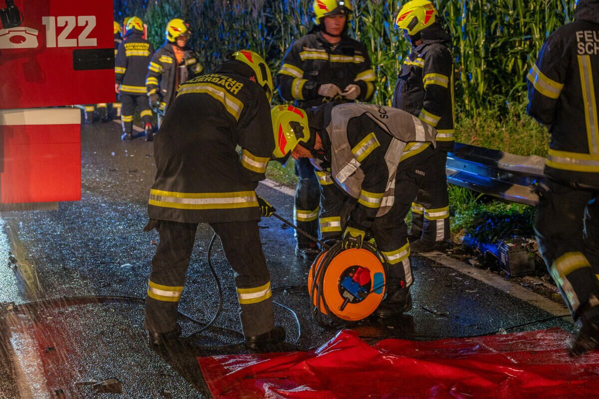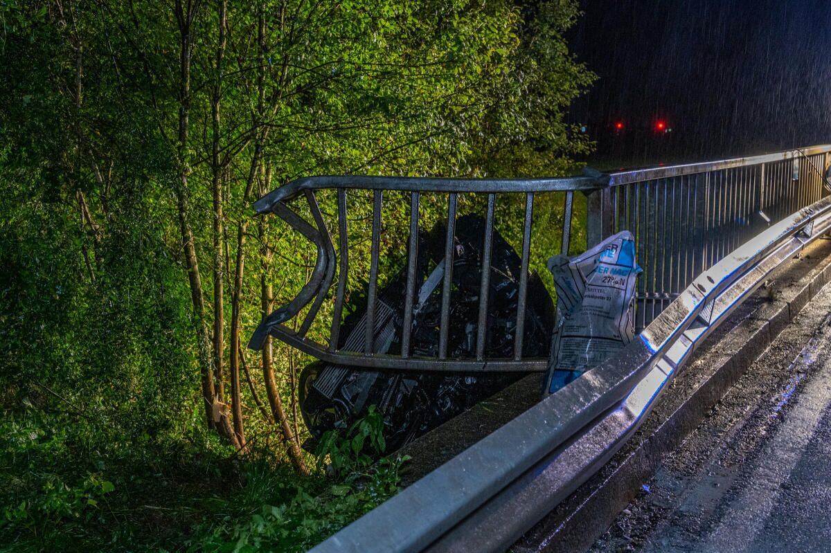 Die Frau aus dem Bezirk Grieskirchen kam aus bislang unbekannter Ursache von der Fahrbahn ab, fuhr auf die Leitplanke, kollidierte mit einem Brückengeländer, überschlug sich und kam in Seitenlage neben einer Brücke auf einer Böschung zum Stillstand. Die Feuerwehr entfernte die Heckscheibe und die Unfalllenkerin konnte das Fahrzeug eigenständig verlassen; sie wurde anschließend auf dem Spineboard über die Böschung zum Rettungsauto getragen. Ein Abschleppunternehmen und die Feuerwehr bargen das Auto. Die L554 war zwischen Schlierbach und Jageredt für 1,5 Stunden total gesperrt.