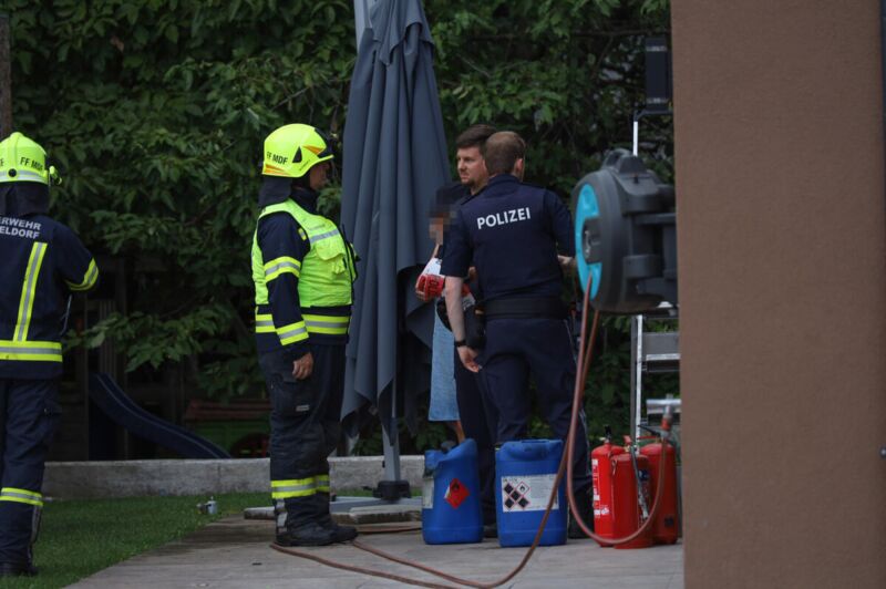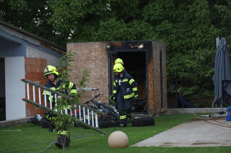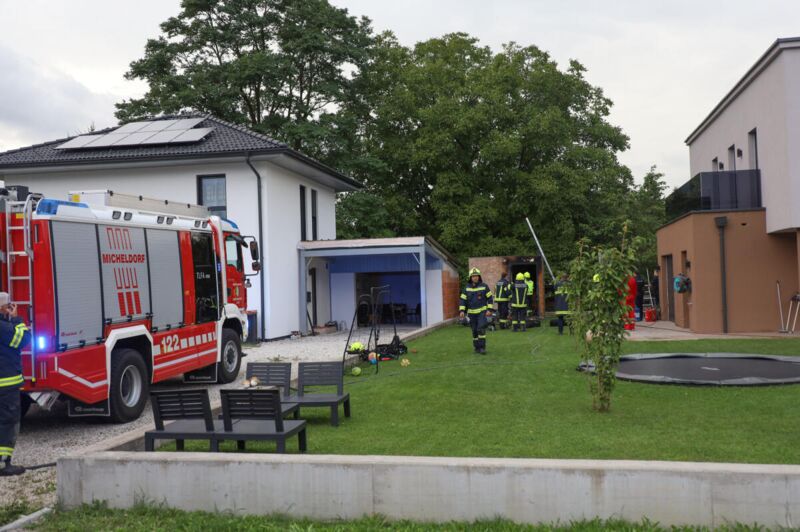 Die Hausbewohner konnten das Feuer mit einem Gartenschlauch bis zum Eintreffen der Feuerwehr weitgehend in Schach halten und verhinderten so, dass sich der Brand auf die Garage des Nachbarhauses ausbreitete. Die Feuerwehrleute starteten sofort einen Löschangriff und waren damit schnell erfolgreich. Die Polizei sperrte den Einsatzort ab, ein Brandermittler wurde verständigt.Verletzt wurde niemand.