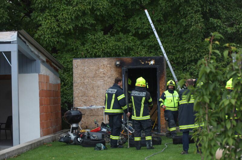 Zwei Feuerwehren bei Brand einer Gartenhütte in Micheldorf im Einsatz