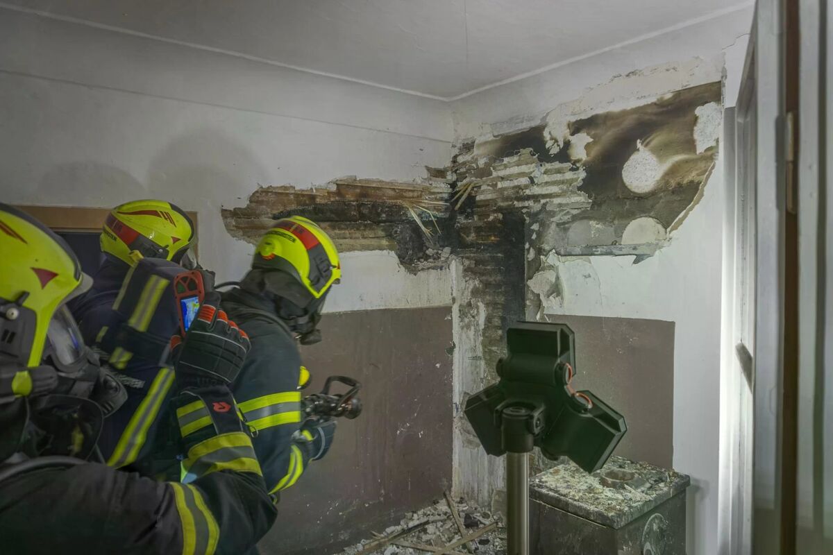 „Die Bewohner hatten bereits vor dem Eintreffen der Feuerwehr erste Löschmaßnahmen mit einem Feuerlöscher durchgeführt, jedoch erschwerten zahlreiche Glutnester die weiteren Löscharbeiten. Um diese vollständig ablöschen zu können, mussten mehrere Teile der Wand geöffnet und entfernt werden. Mittels Wärmebildkamera konnten alle Glutnester lokalisiert und abgelöscht werden“, berichtet die Feuerwehr WIndischgarsten.