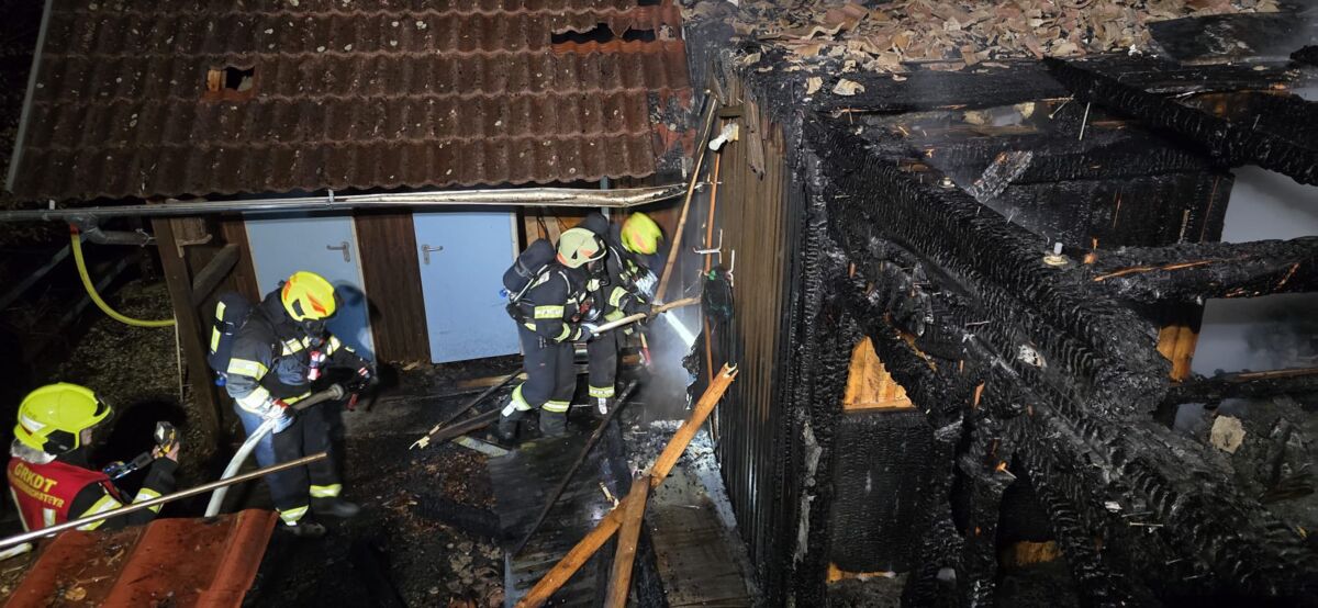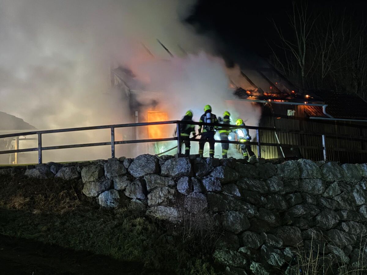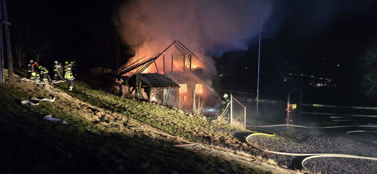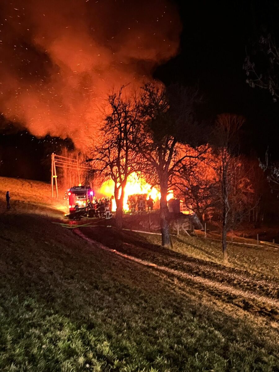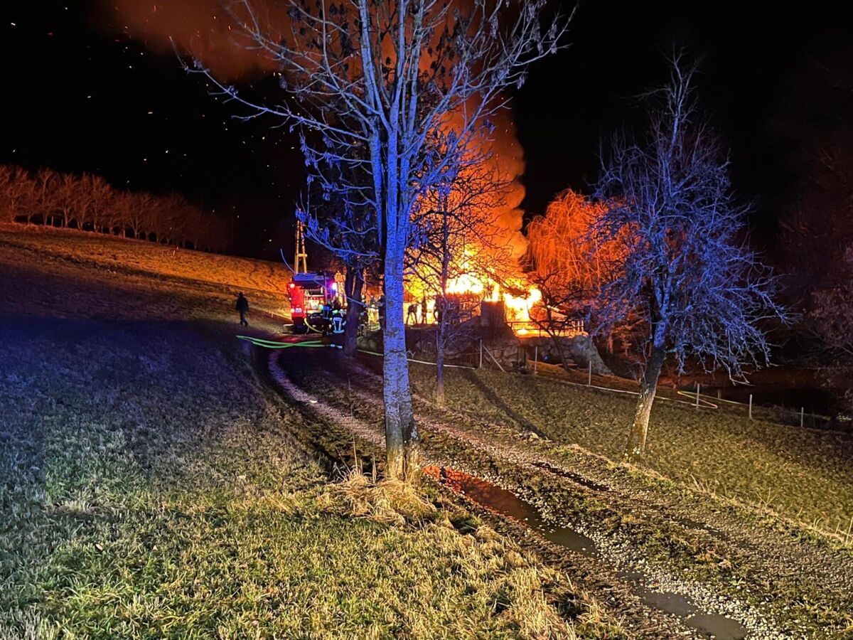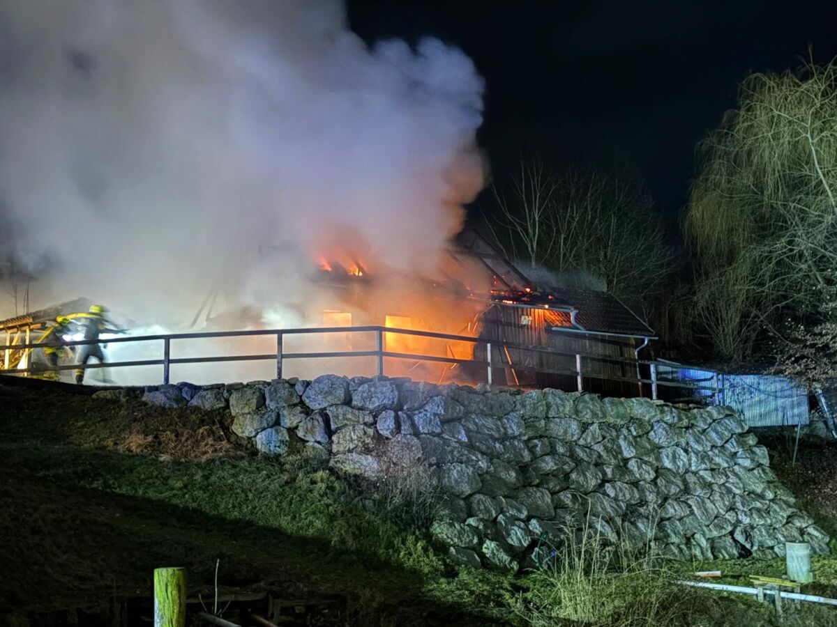 Beim Eintreffen der Einsatzkräfte stand das Gebäude, das in seiner Größe einem Einfamilienhaus entsprach, bereits in Vollbrand. Dank eines nahegelegenen Teiches konnte die Löschwasserversorgung rasch und unkompliziert sichergestellt werden.