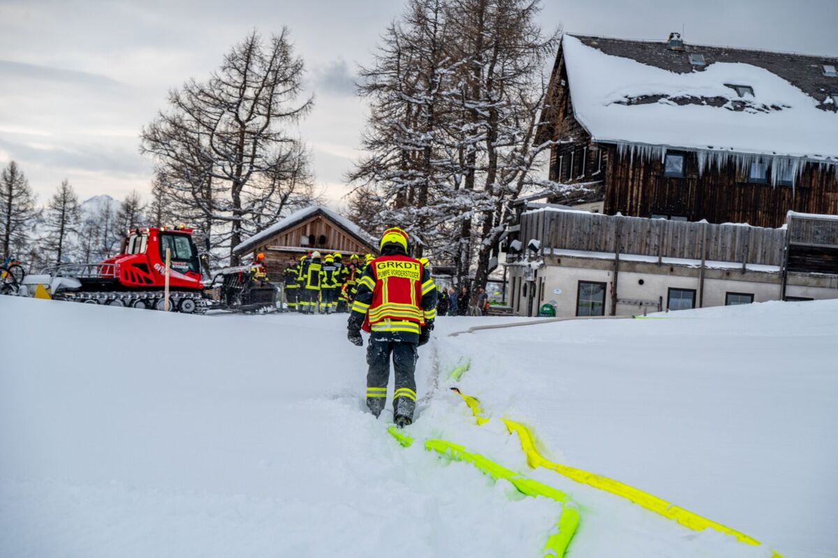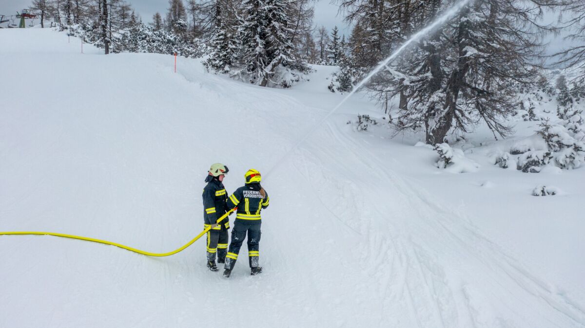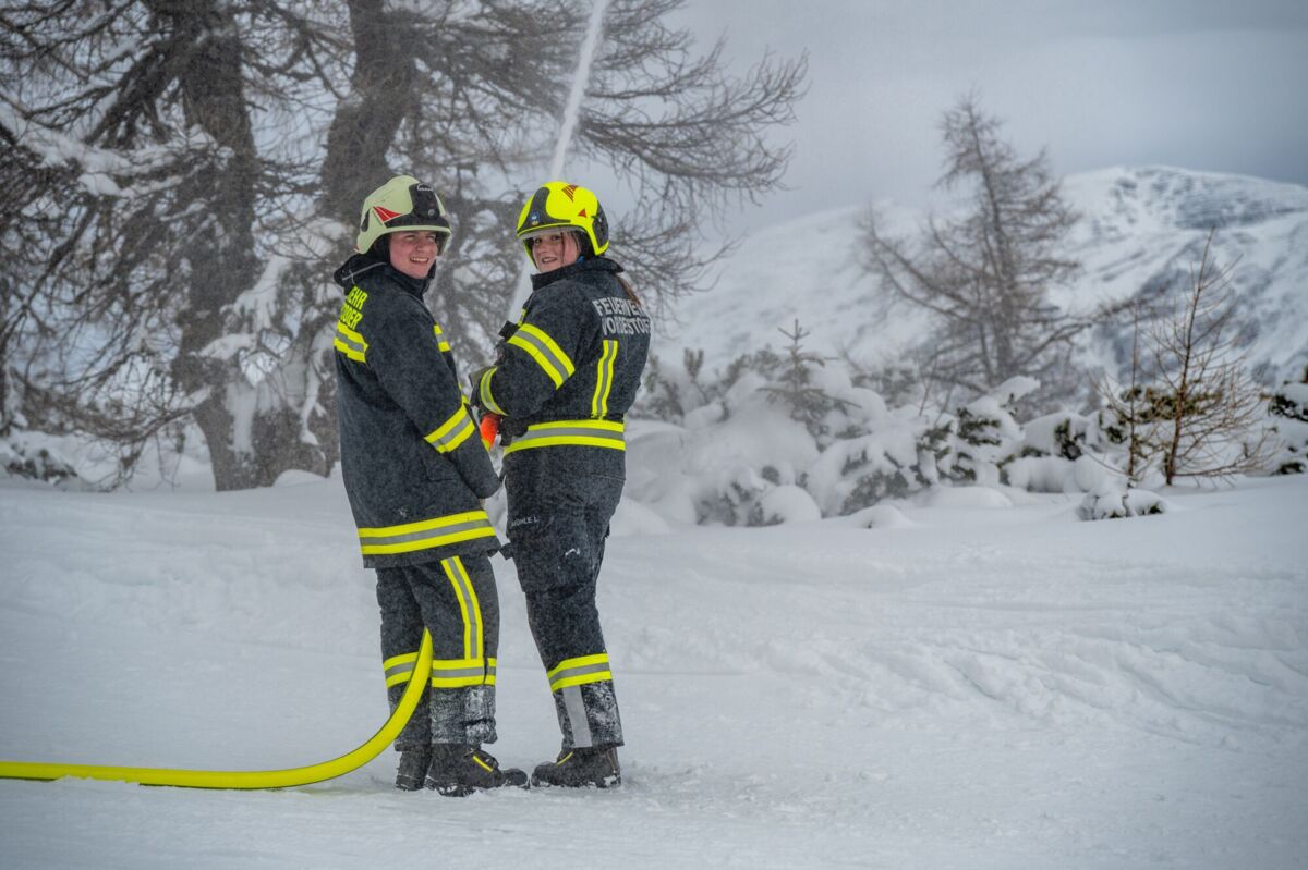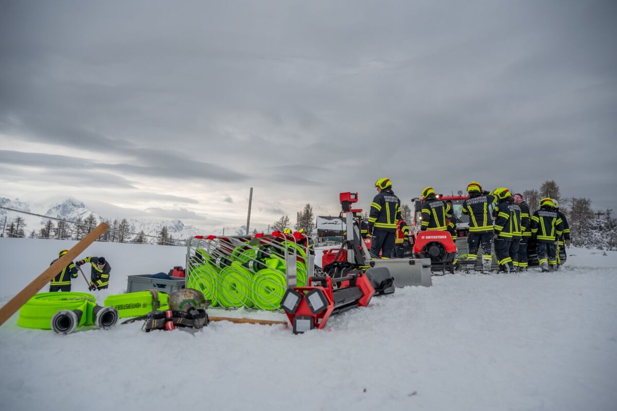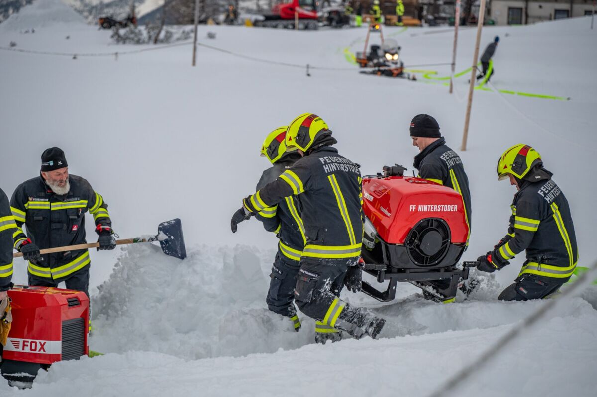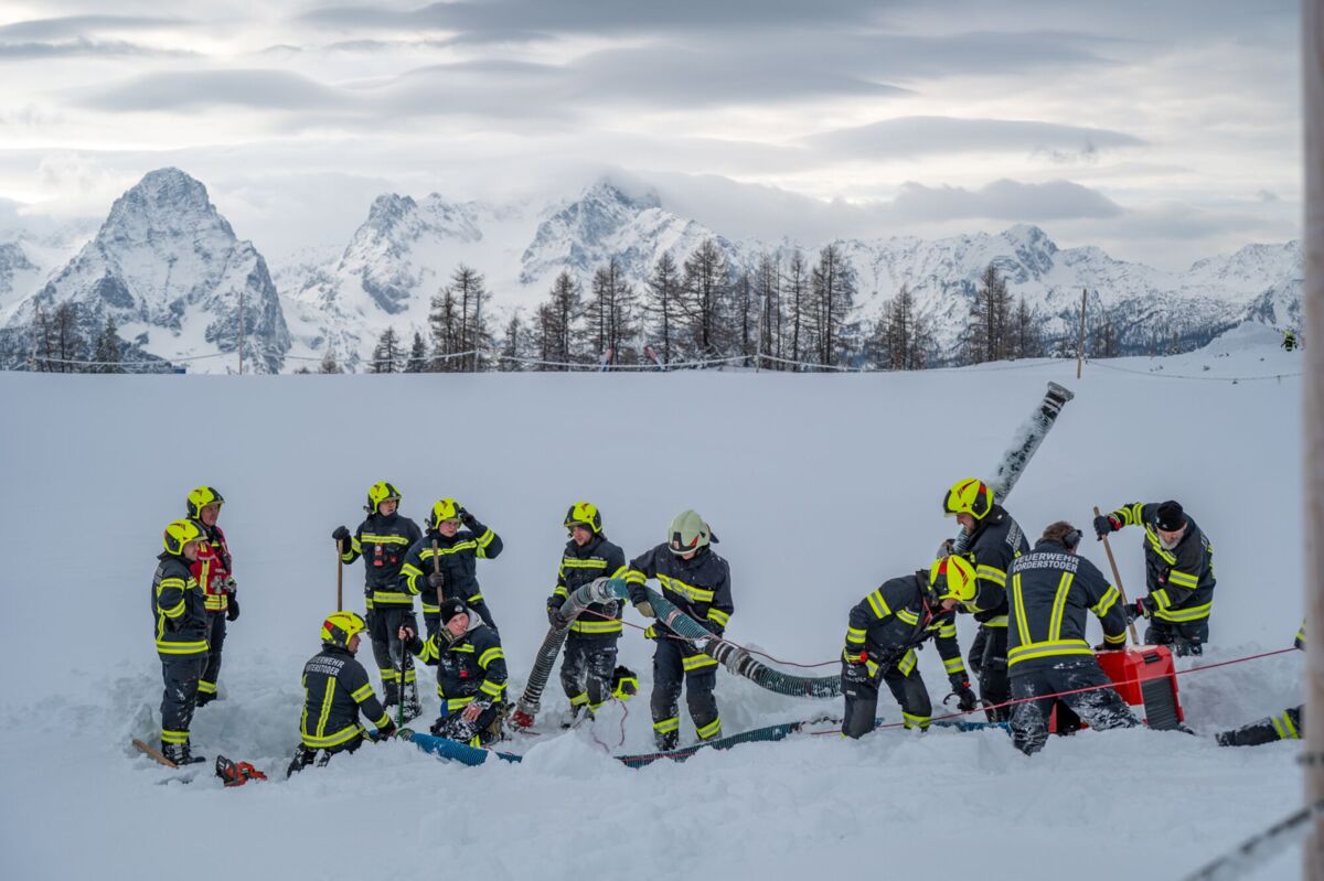 HINTERSTODER. Was passiert, wenn es auf 1.800 Metern Seehöhe brennt, während das Skigebiet im Tiefschnee versinkt? Um für den Ernstfall am Berggasthof gerüstet zu sein, haben sich die Feuerwehren Hinter- und Vorderstoder am Samstag einer ganz besonderen Herausforderung gestellt.