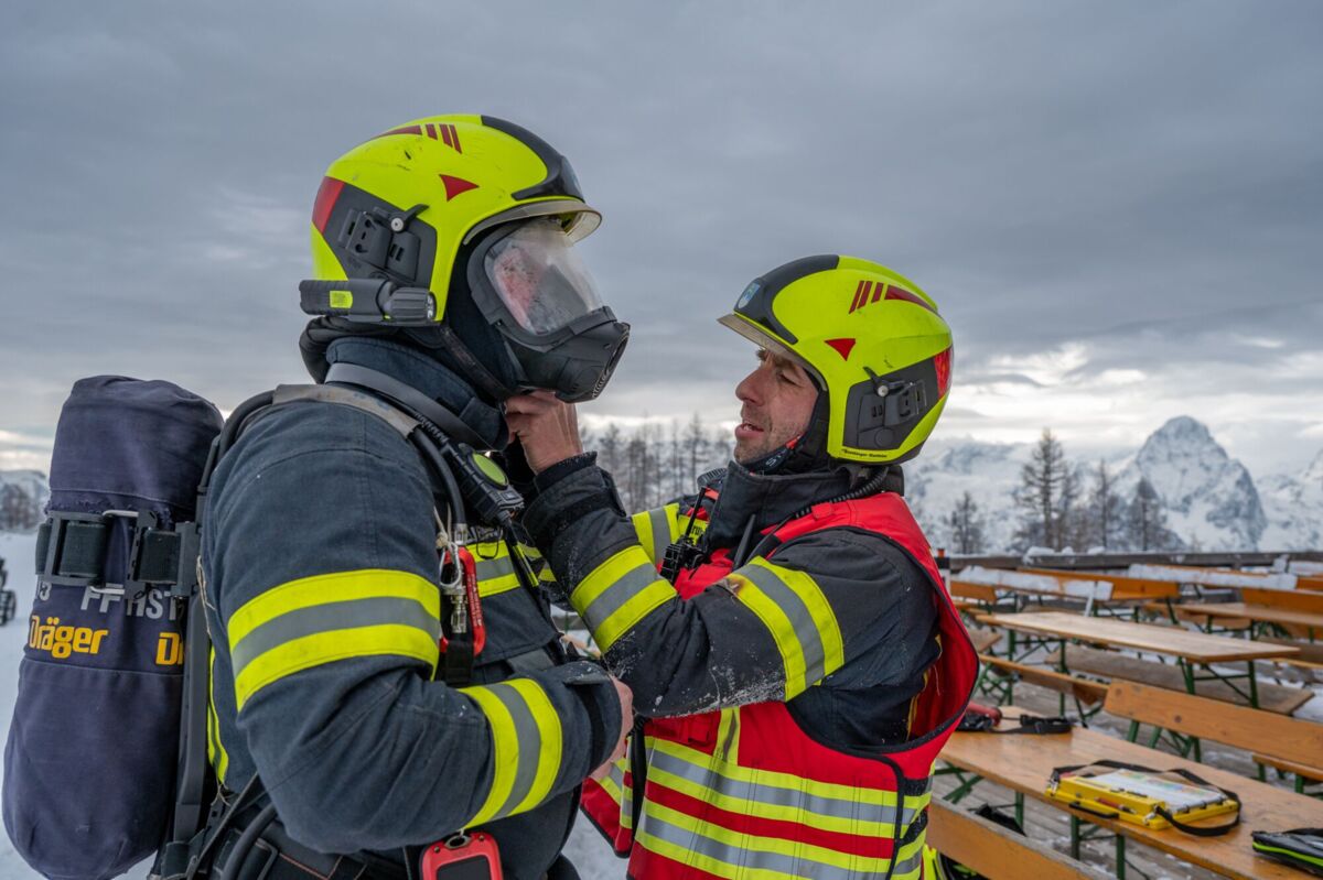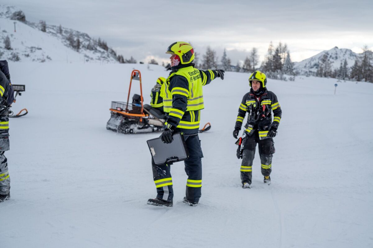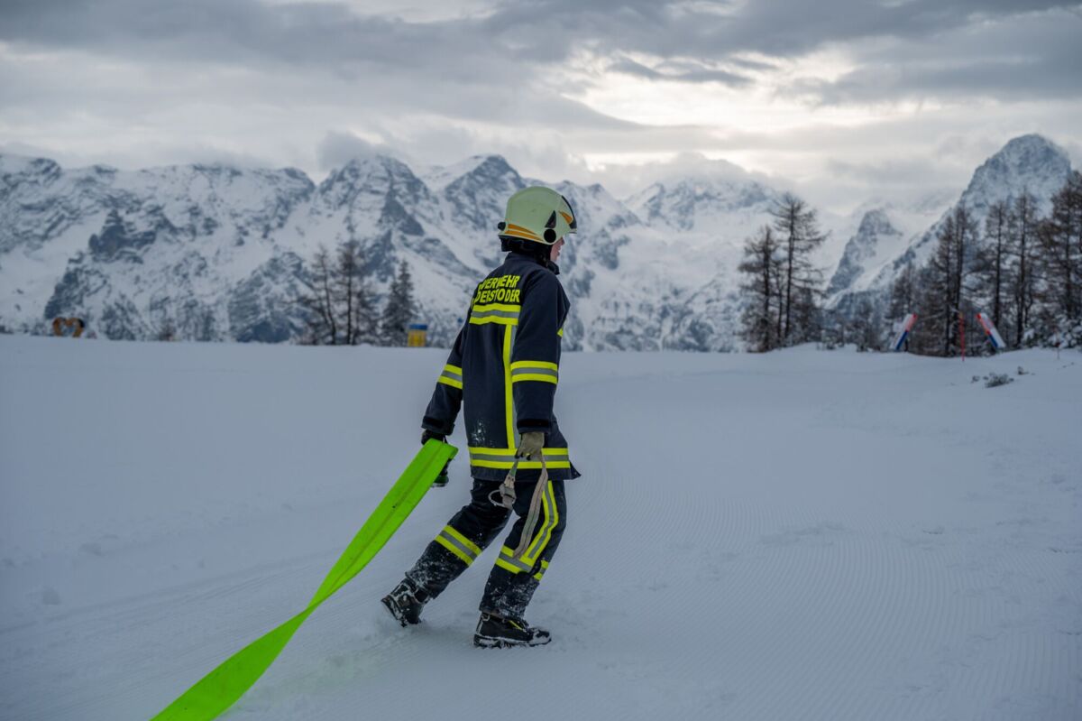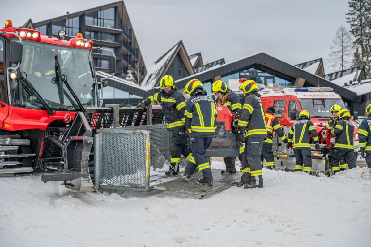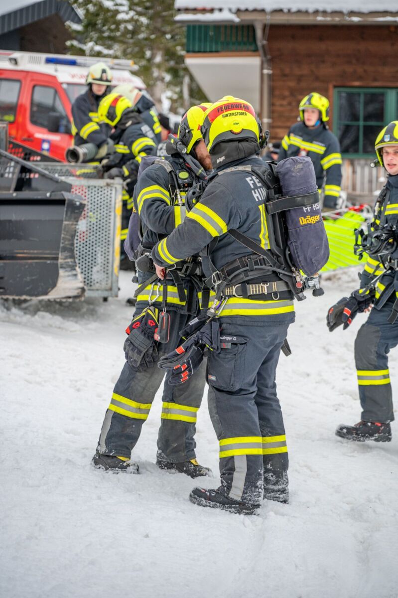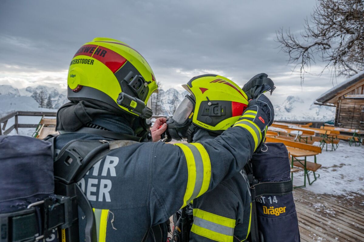 HINTERSTODER. Was passiert, wenn es auf 1.800 Metern Seehöhe brennt, während das Skigebiet im Tiefschnee versinkt? Um für den Ernstfall am Berggasthof gerüstet zu sein, haben sich die Feuerwehren Hinter- und Vorderstoder am Samstag einer ganz besonderen Herausforderung gestellt.