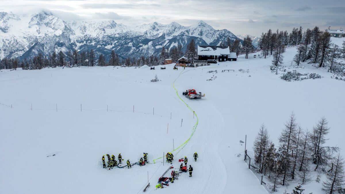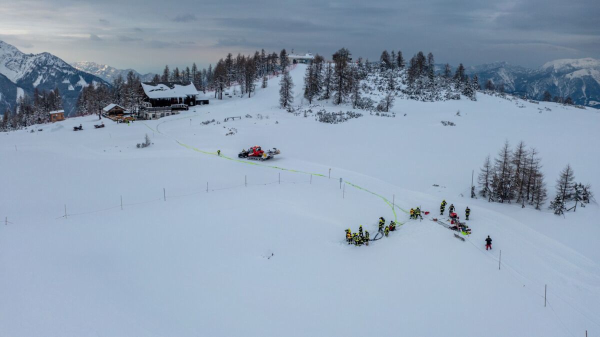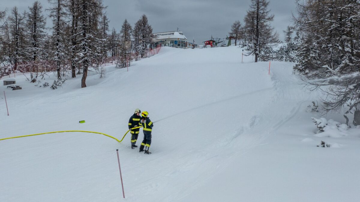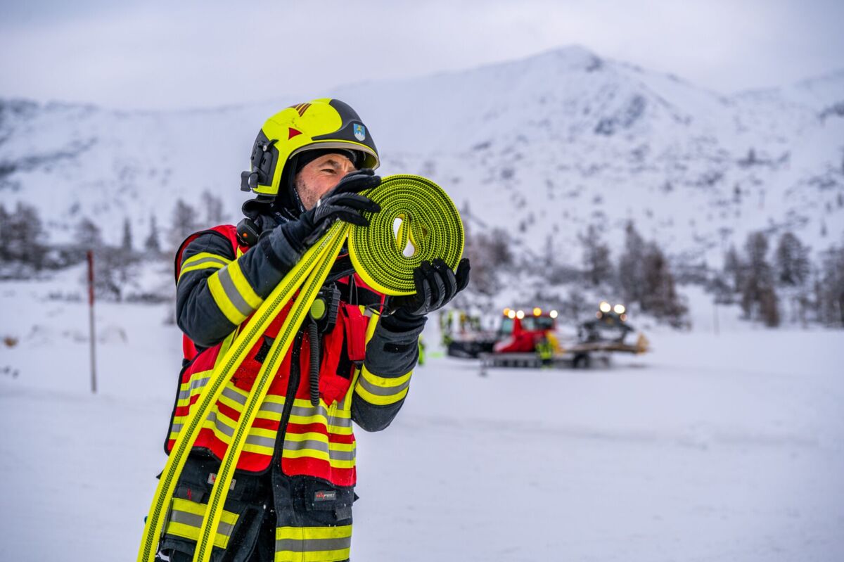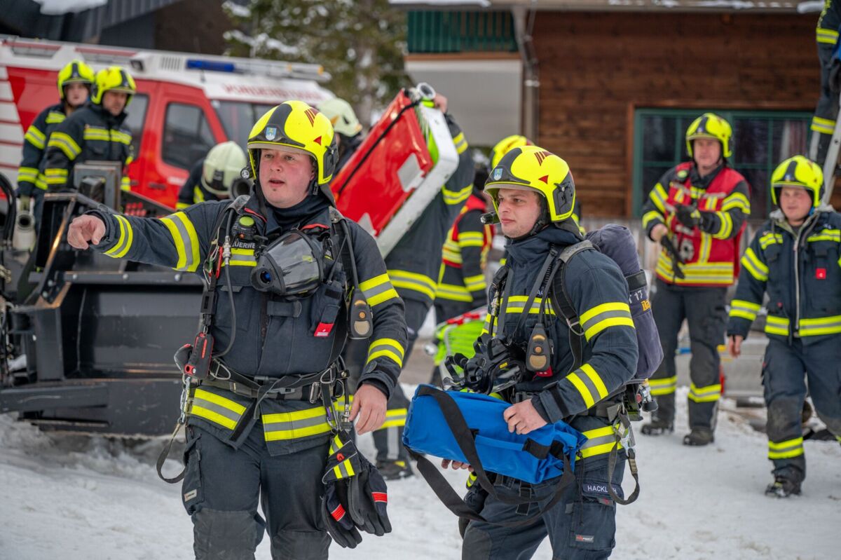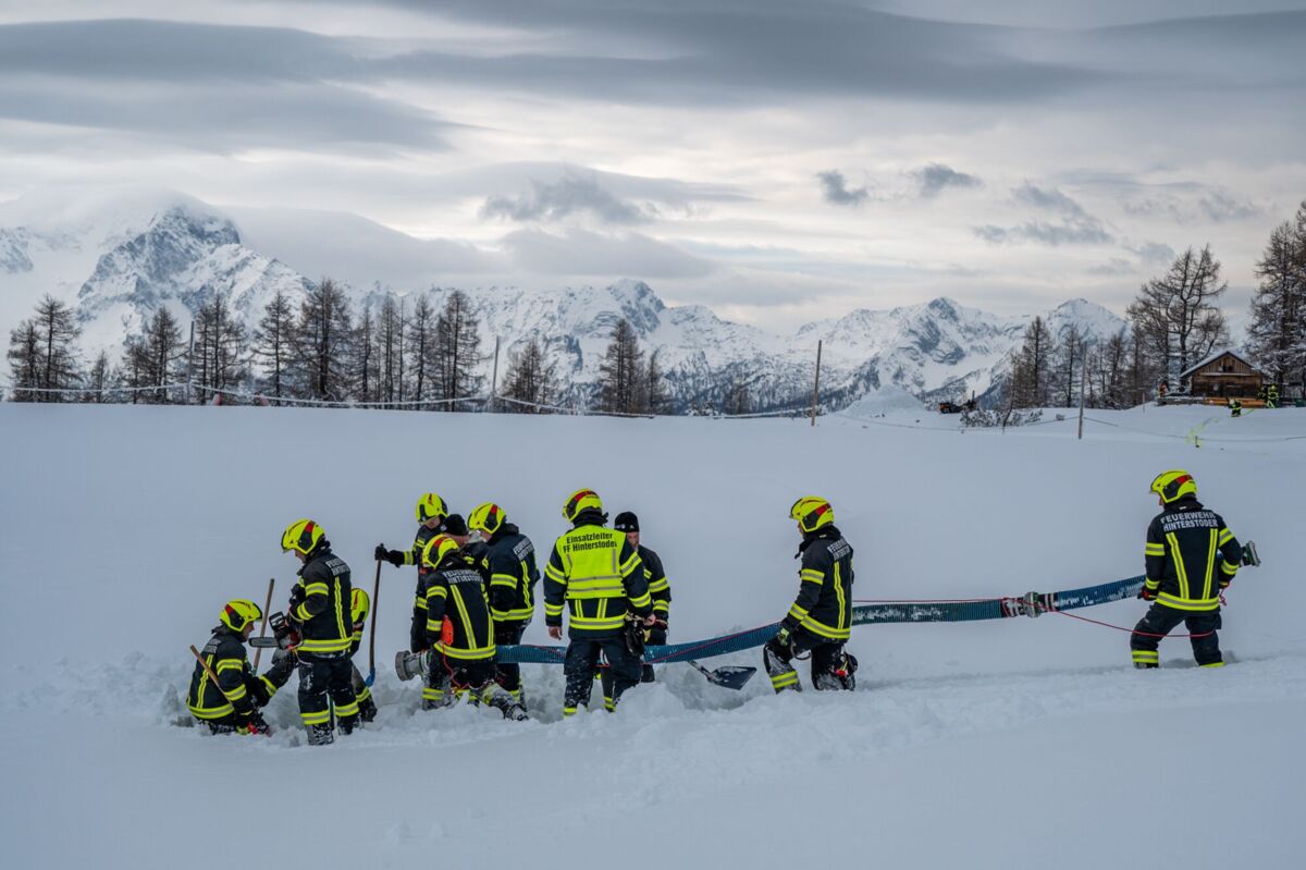HINTERSTODER. Was passiert, wenn es auf 1.800 Metern Seehöhe brennt, während das Skigebiet im Tiefschnee versinkt? Um für den Ernstfall am Berggasthof gerüstet zu sein, haben sich die Feuerwehren Hinter- und Vorderstoder am Samstag einer ganz besonderen Herausforderung gestellt.