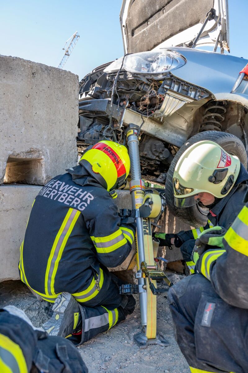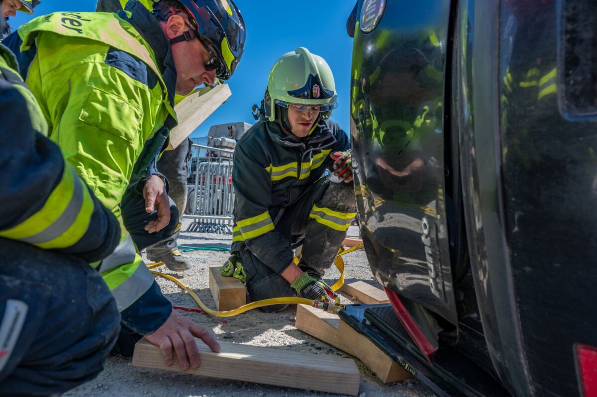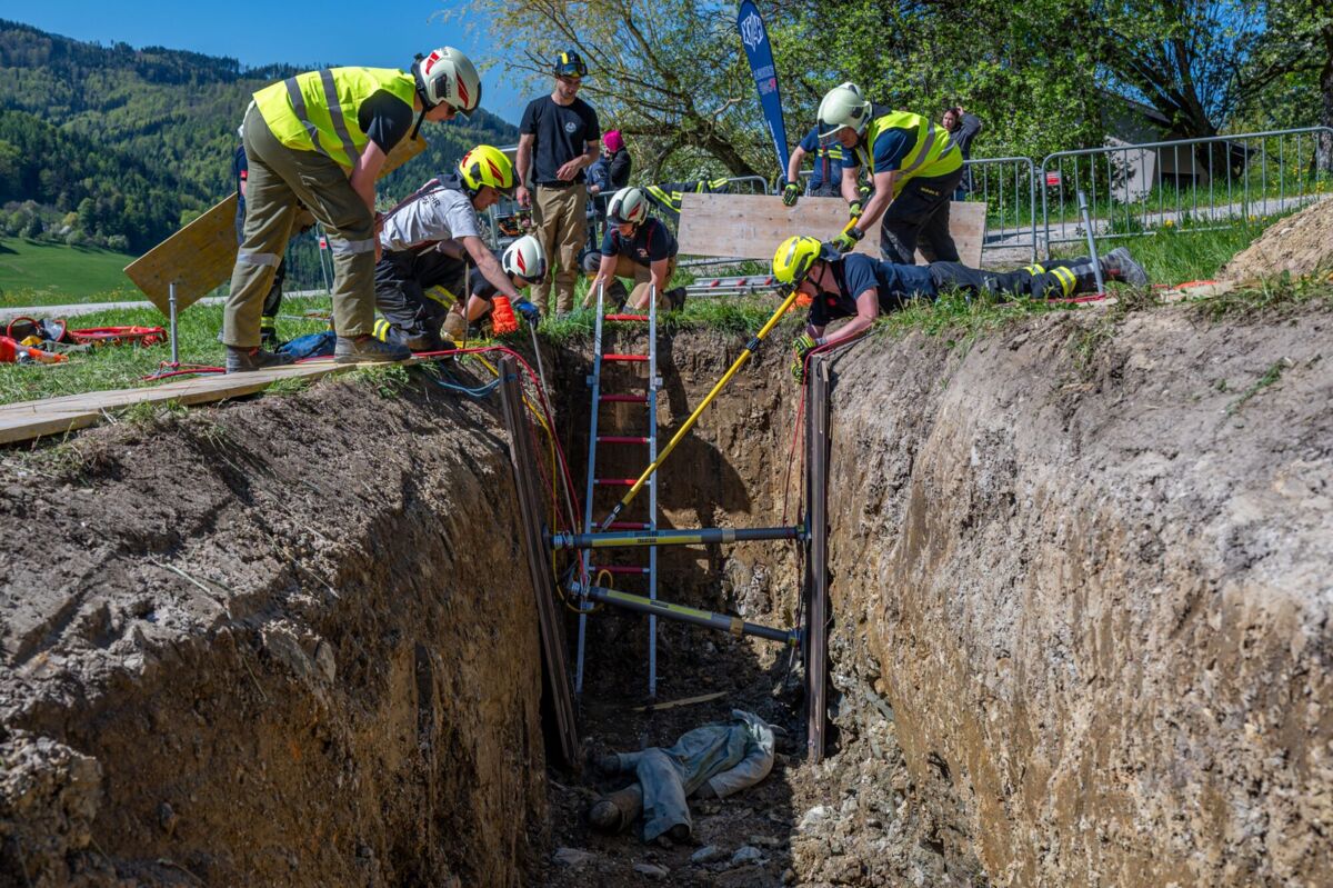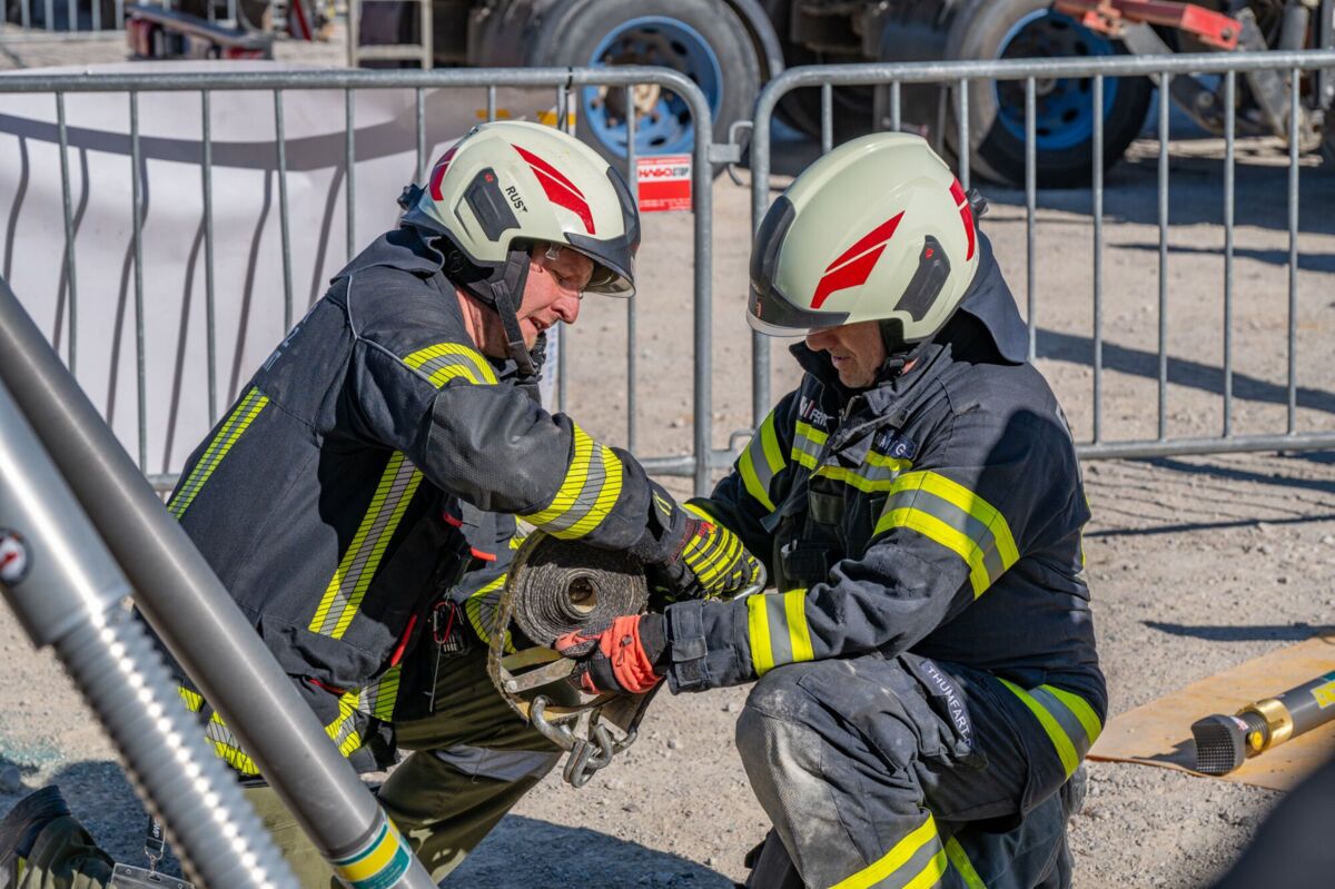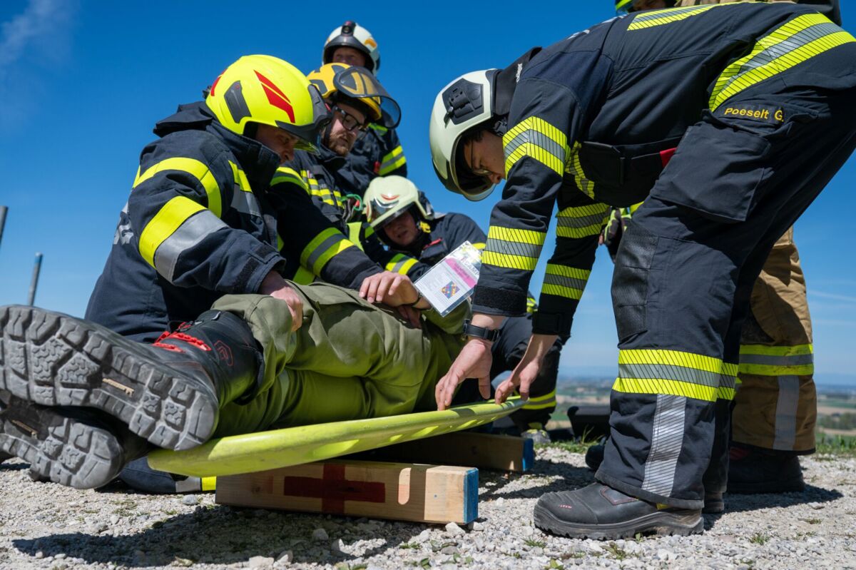 Am Nachmittag wechselte das Geschehen ins Freie: In mehreren praxisnah aufgebauten Stationen konnten die Teilnehmer ihr Wissen direkt anwenden. Dabei wurden unter anderem das Heben und Sichern schwerer Lasten, die technische Menschenrettung sowie komplexe Szenarien bei Bauunfällen trainiert.