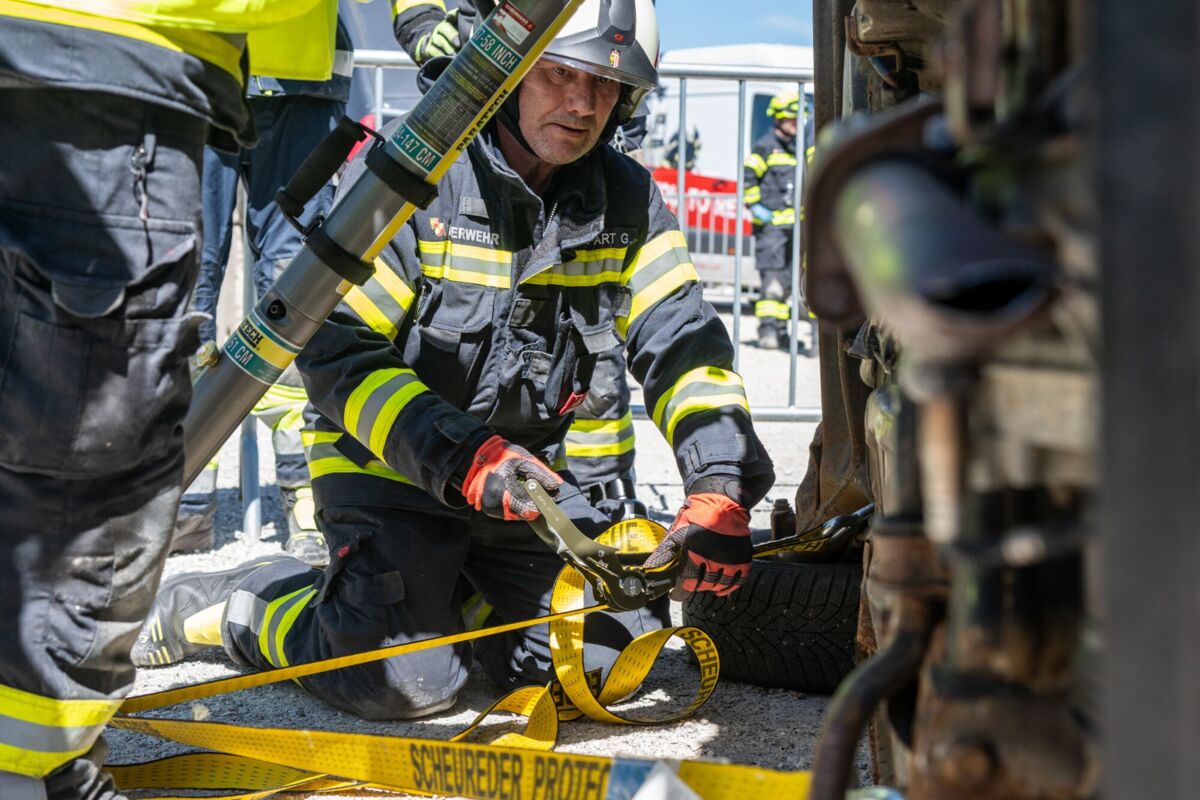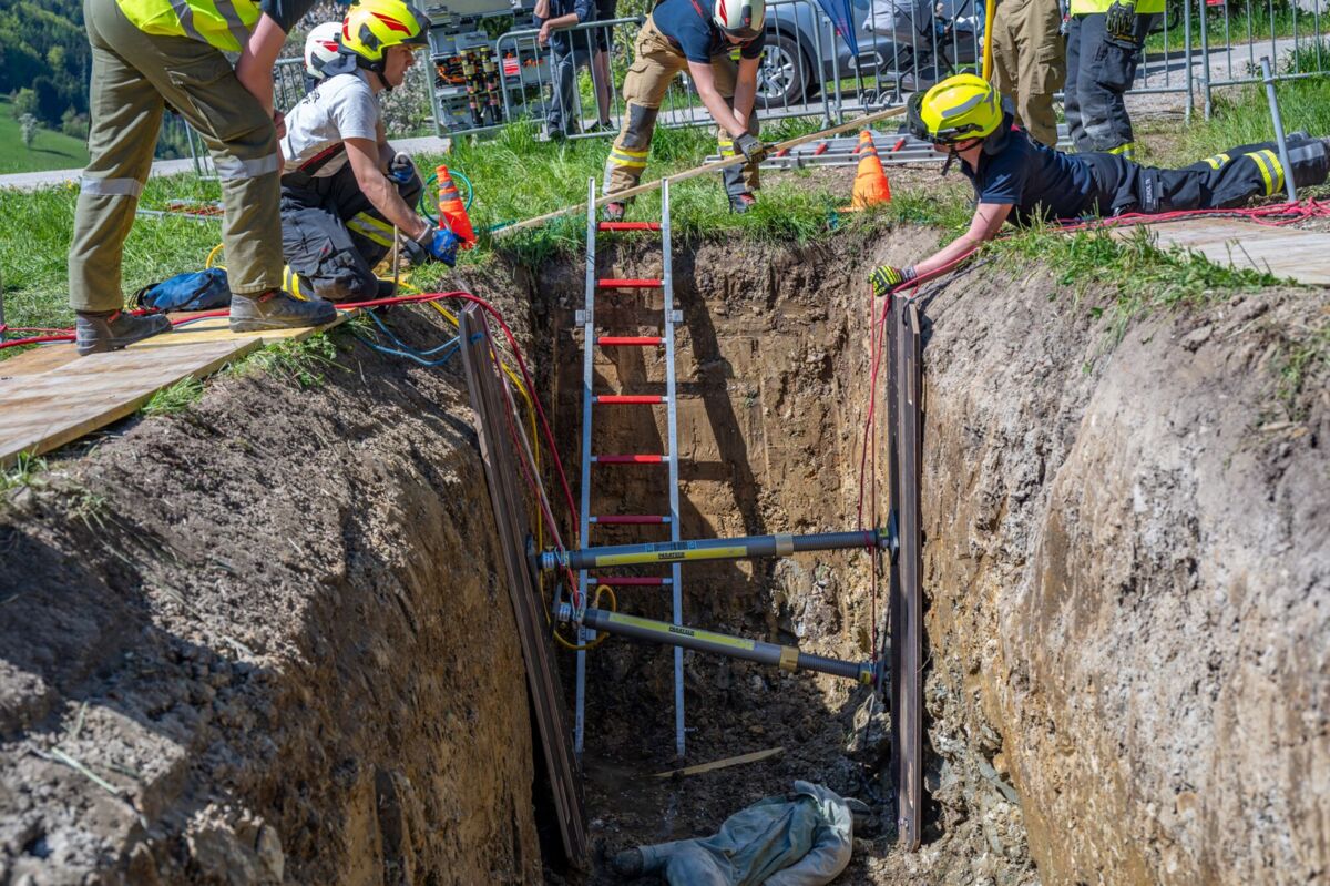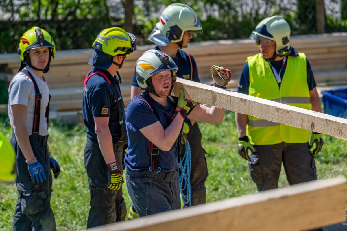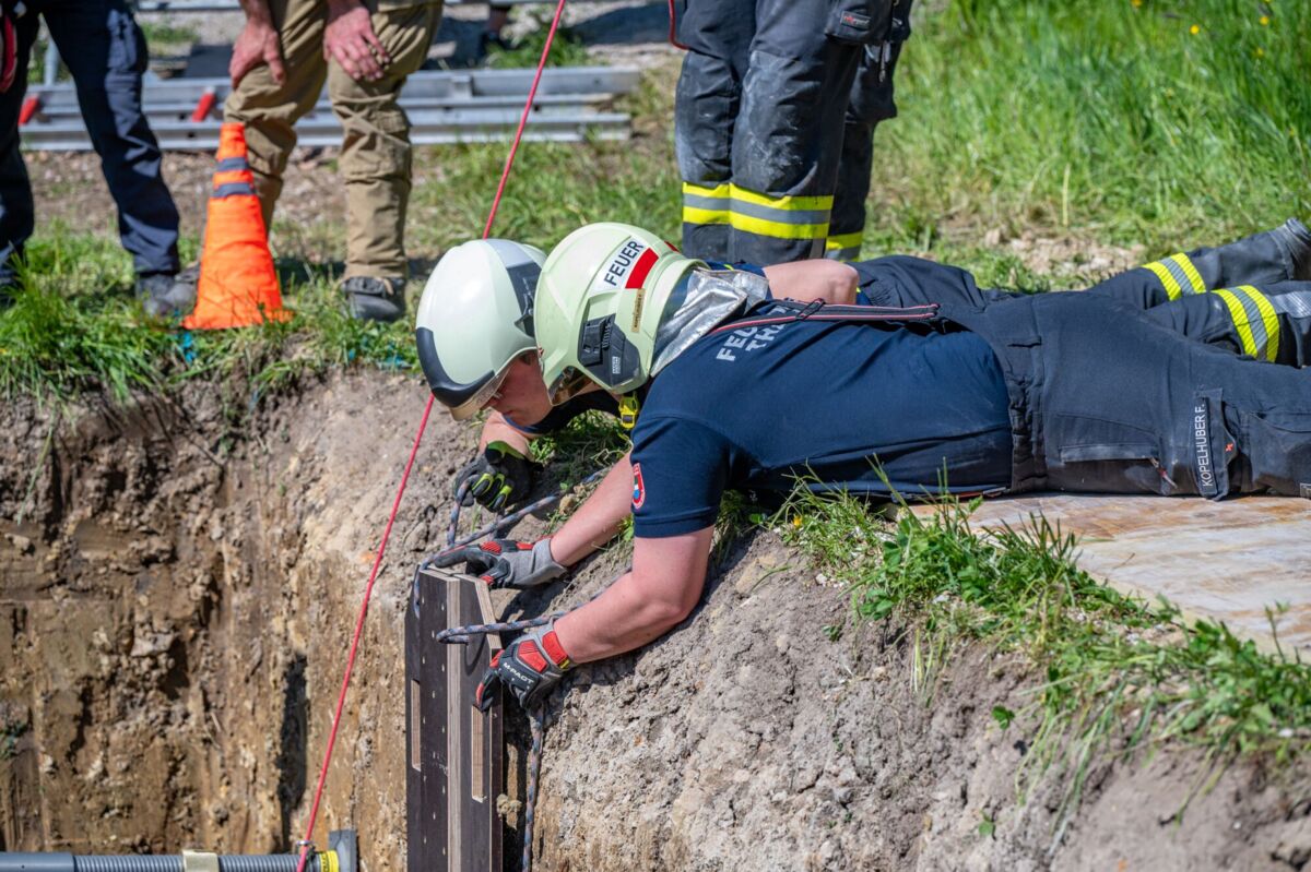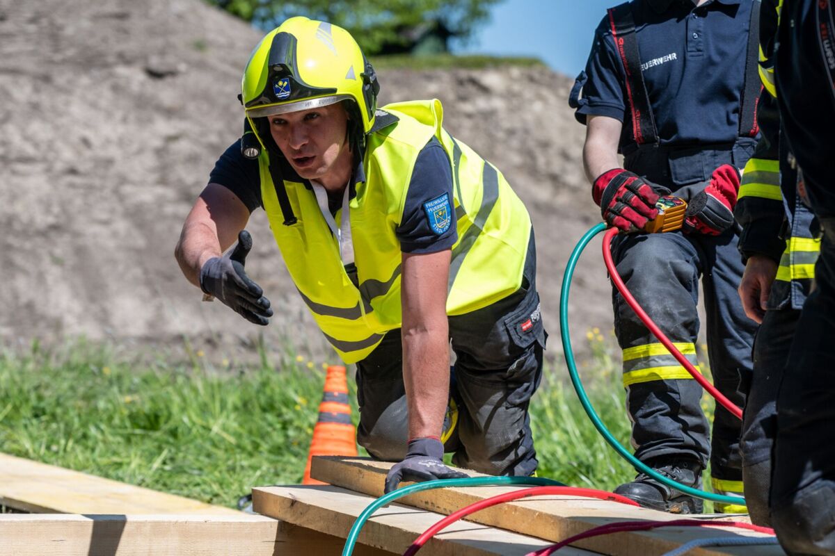 Am Nachmittag wechselte das Geschehen ins Freie: In mehreren praxisnah aufgebauten Stationen konnten die Teilnehmer ihr Wissen direkt anwenden. Dabei wurden unter anderem das Heben und Sichern schwerer Lasten, die technische Menschenrettung sowie komplexe Szenarien bei Bauunfällen trainiert.