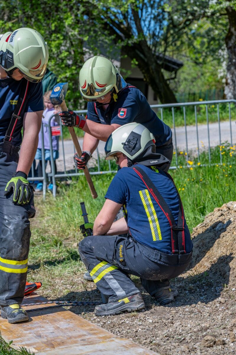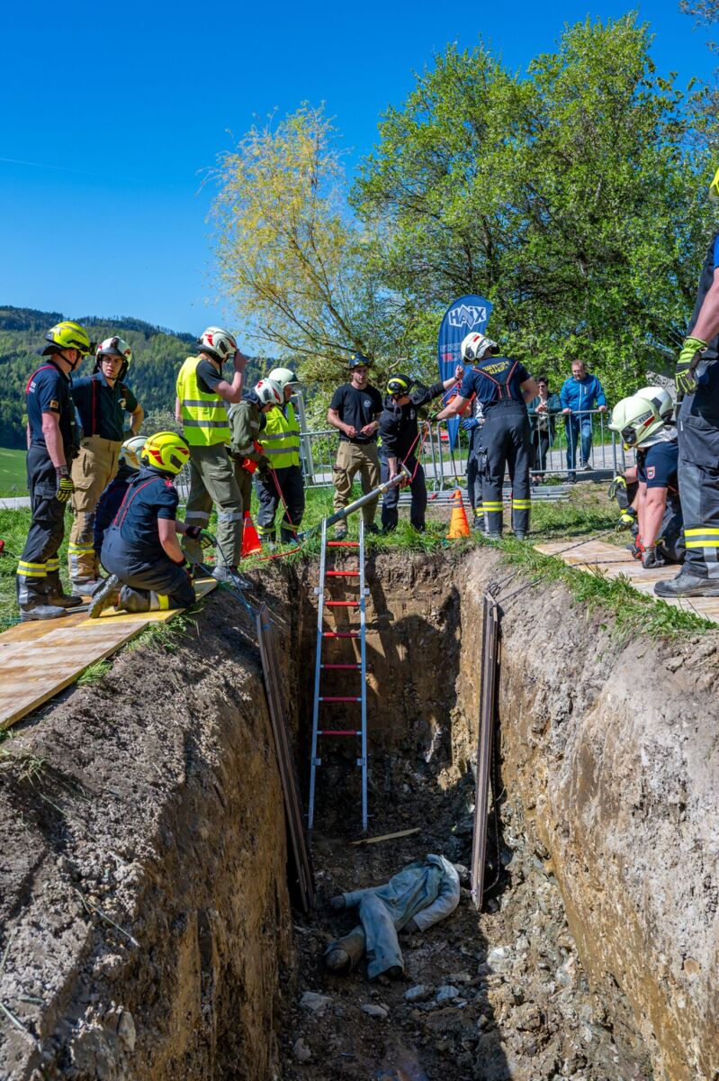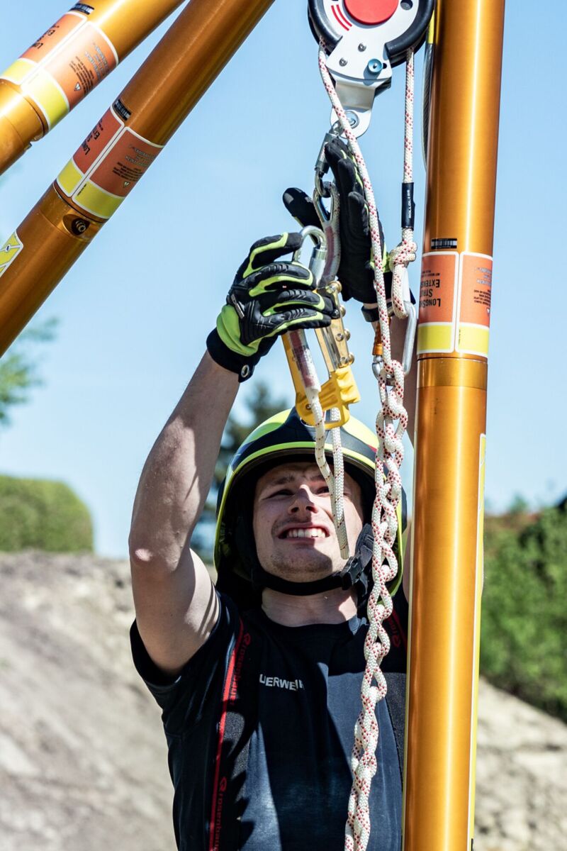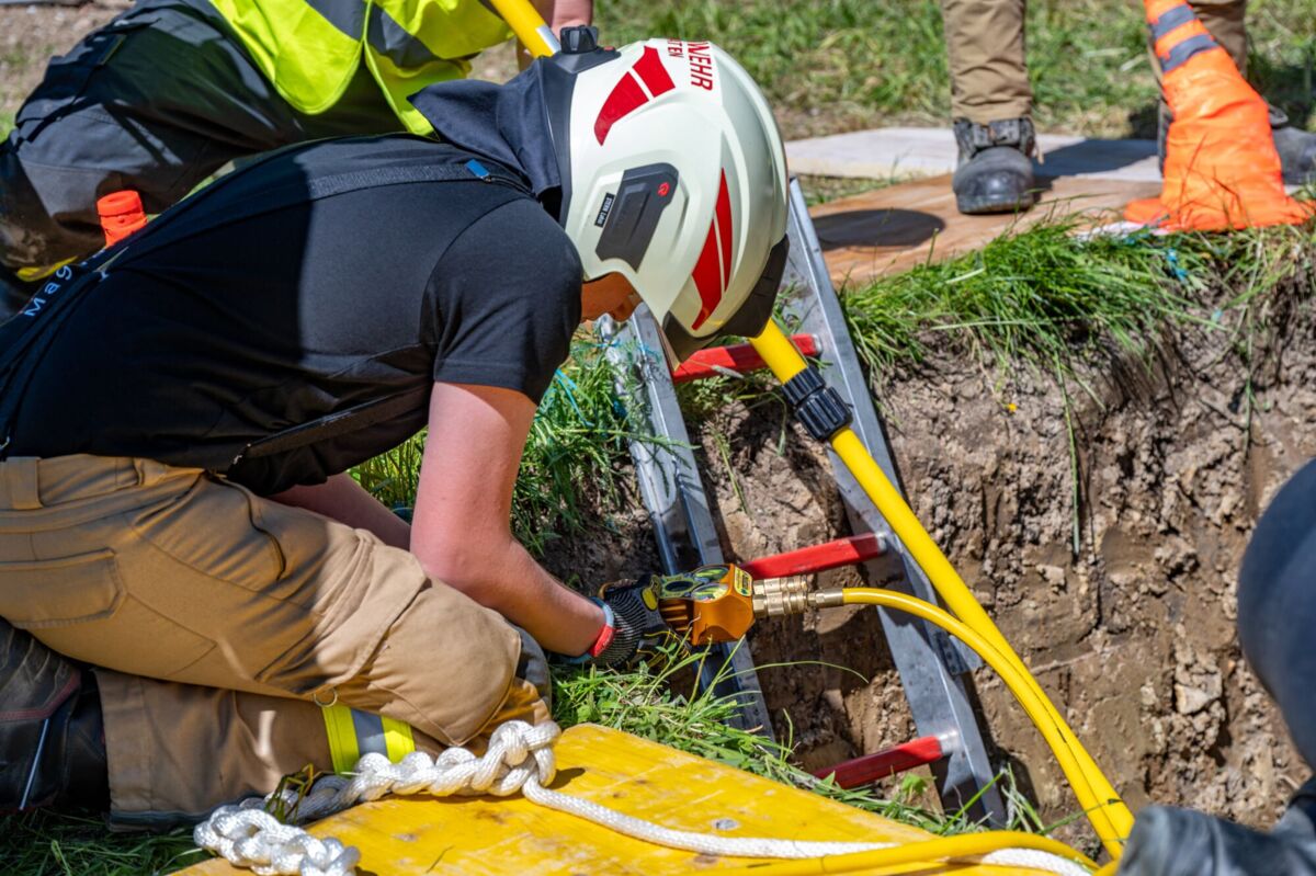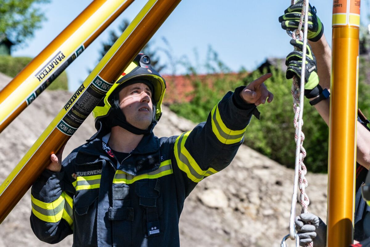 Am Nachmittag wechselte das Geschehen ins Freie: In mehreren praxisnah aufgebauten Stationen konnten die Teilnehmer ihr Wissen direkt anwenden. Dabei wurden unter anderem das Heben und Sichern schwerer Lasten, die technische Menschenrettung sowie komplexe Szenarien bei Bauunfällen trainiert.