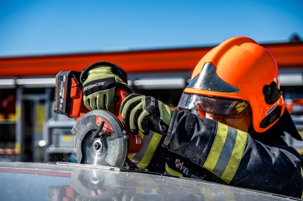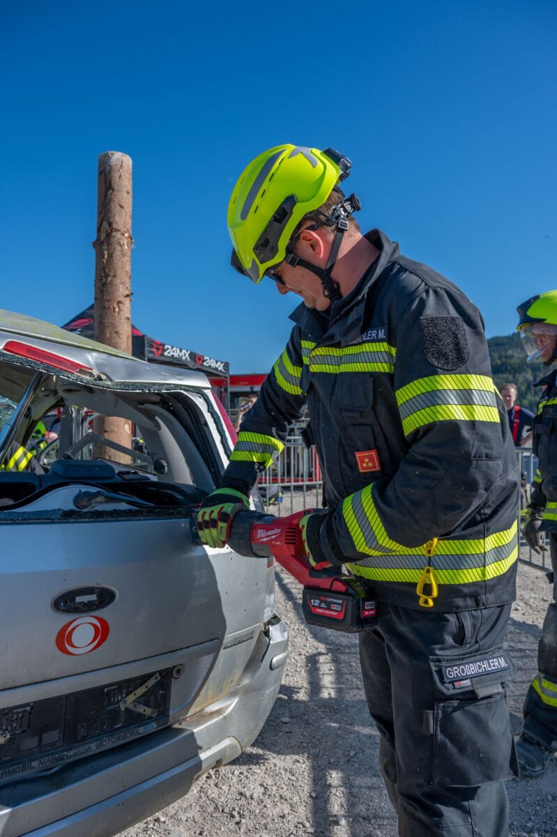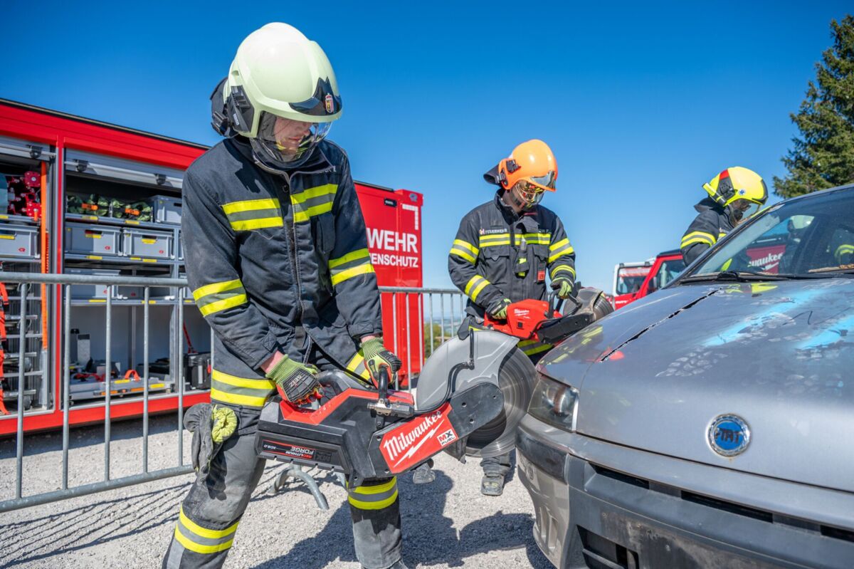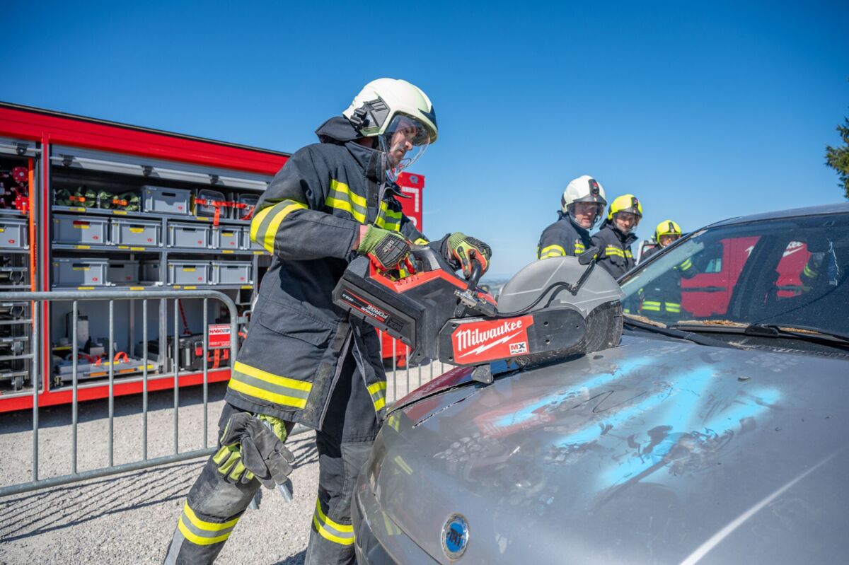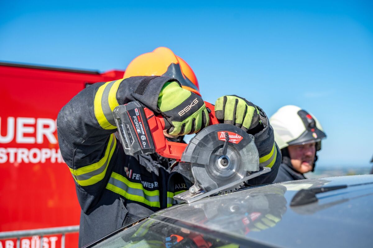 An einer weiteren Station bot sich den Teilnehmern die Möglichkeit, akkubetriebene Geräte der Firma Milwaukee unter realistischen Bedingungen praktisch zu erproben. Dabei konnten verschiedene Anwendungen getestet und wertvolle Erfahrungen für den Einsatzalltag gesammelt werden. Besonders gefordert waren dabei präzises Arbeiten, Teamkoordination und der sichere Umgang mit Geräten.