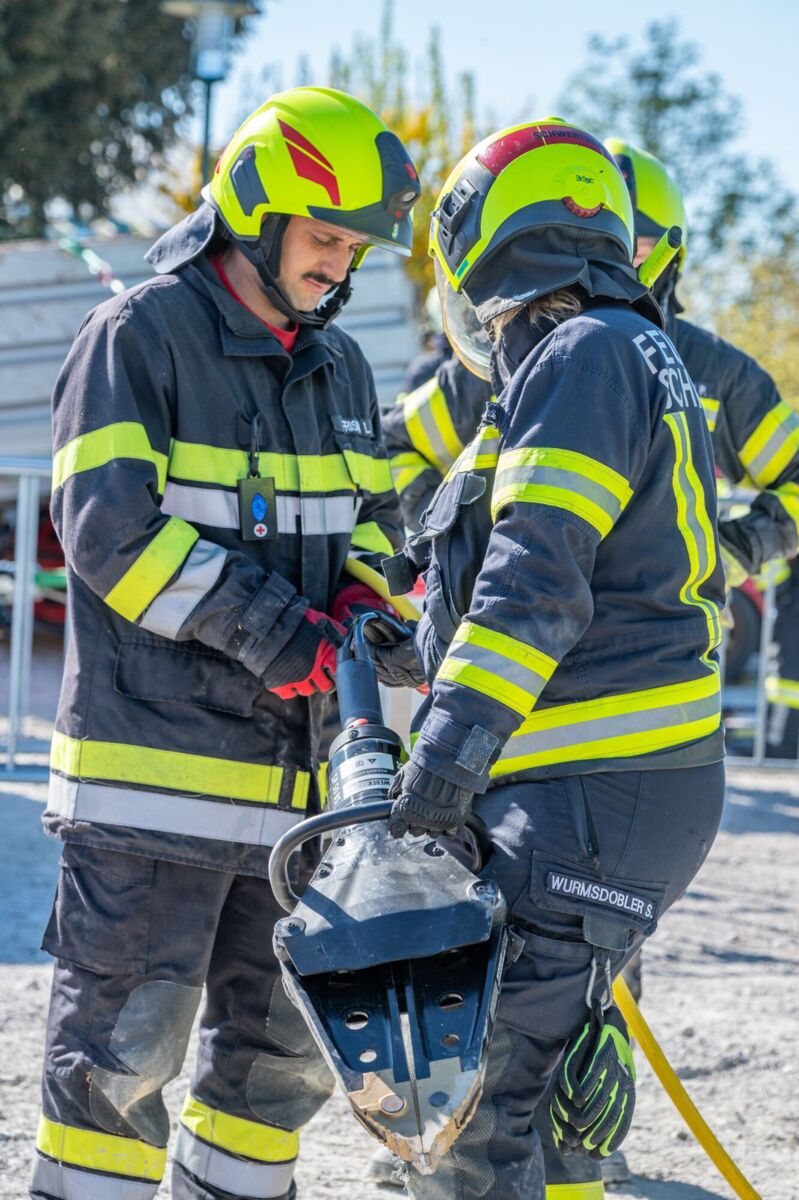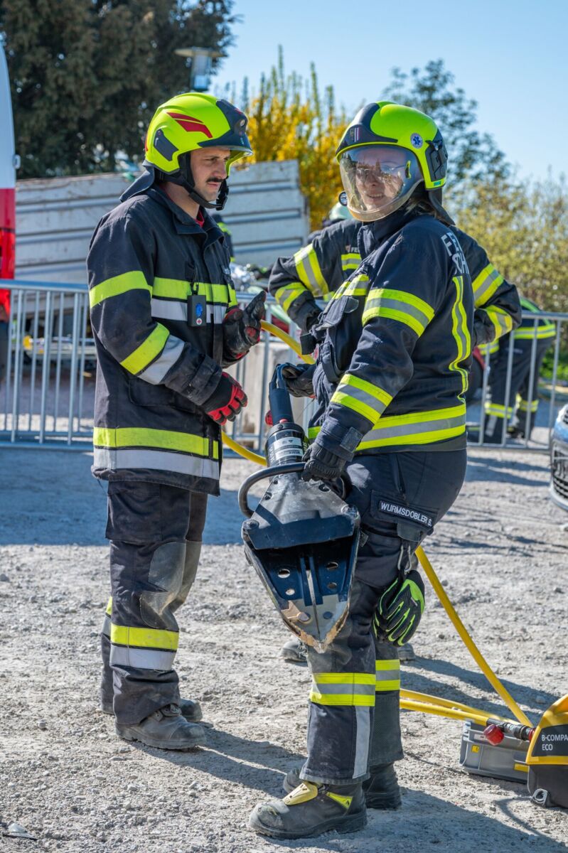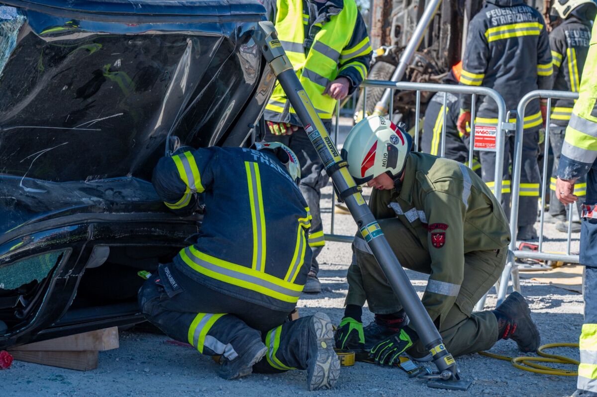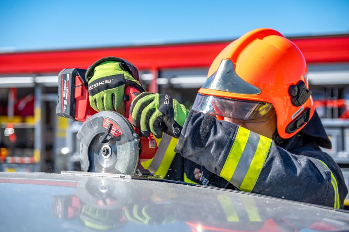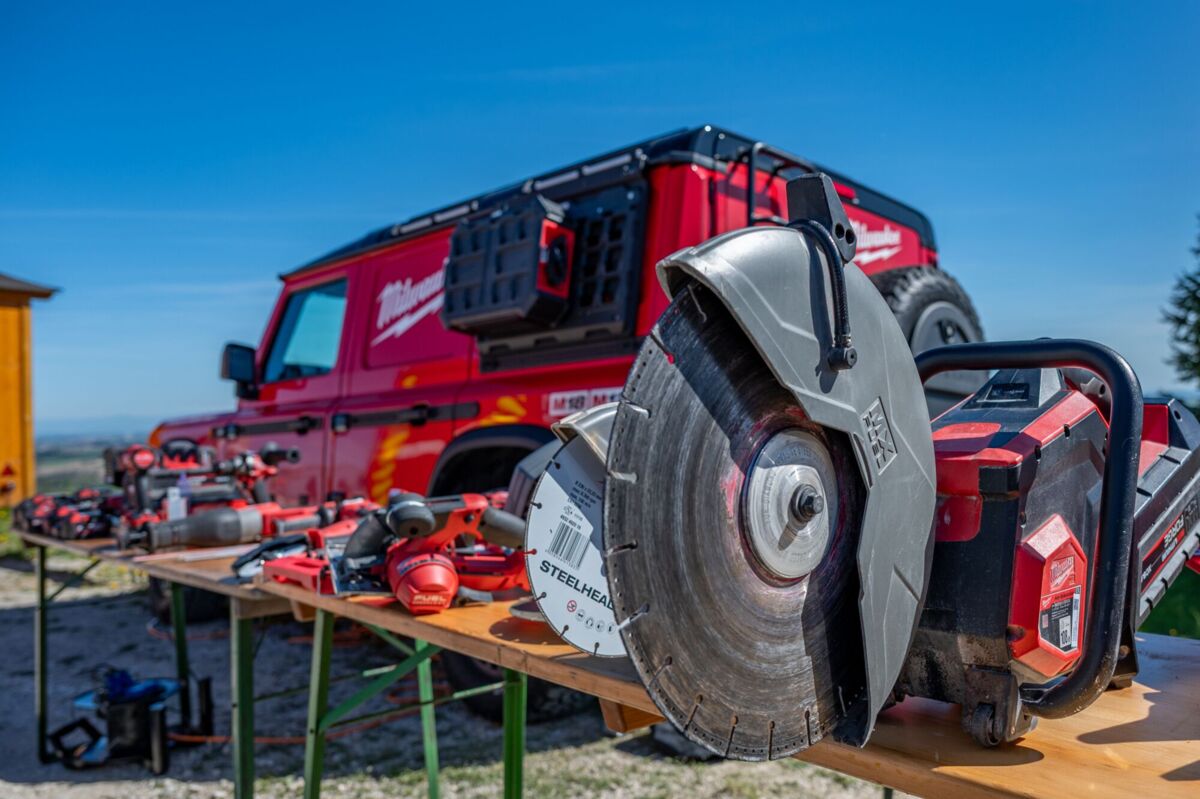 An einer weiteren Station bot sich den Teilnehmern die Möglichkeit, akkubetriebene Geräte der Firma Milwaukee unter realistischen Bedingungen praktisch zu erproben. Dabei konnten verschiedene Anwendungen getestet und wertvolle Erfahrungen für den Einsatzalltag gesammelt werden. Besonders gefordert waren dabei präzises Arbeiten, Teamkoordination und der sichere Umgang mit Geräten.