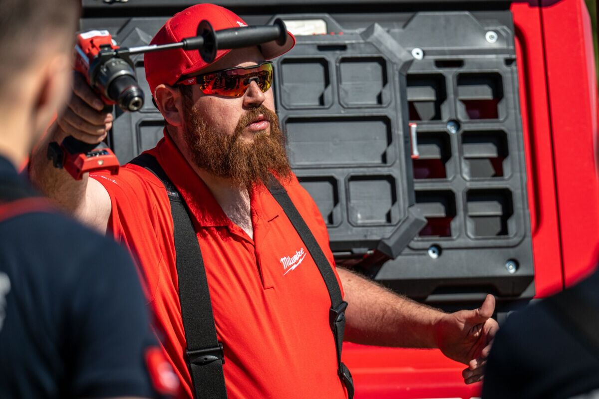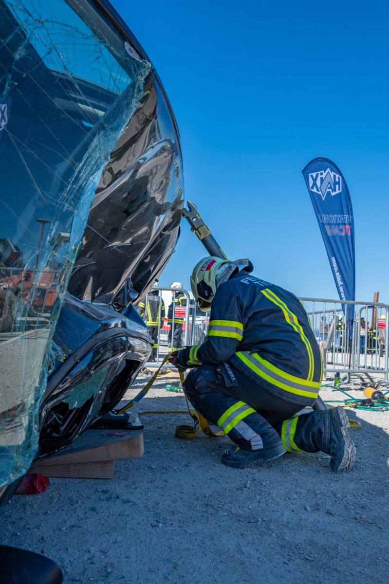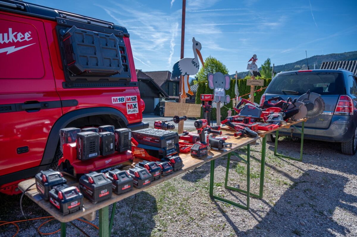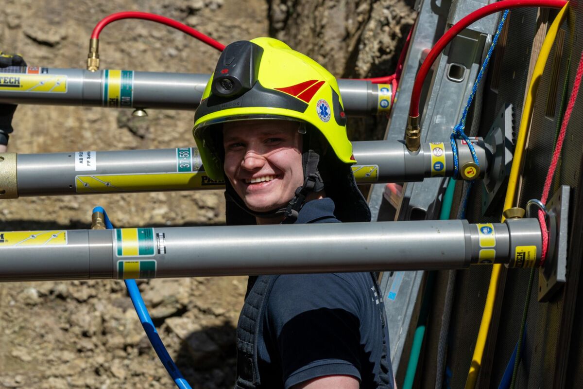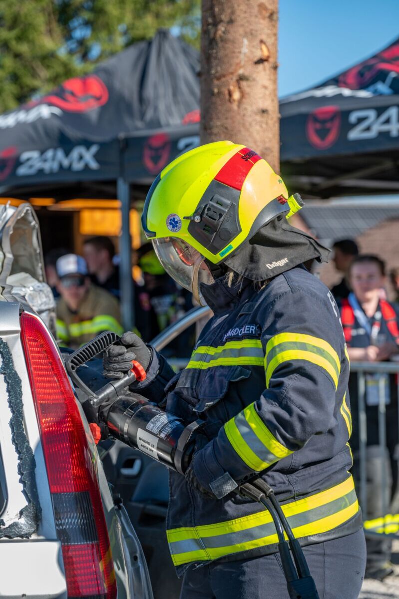 An einer weiteren Station bot sich den Teilnehmern die Möglichkeit, akkubetriebene Geräte der Firma Milwaukee unter realistischen Bedingungen praktisch zu erproben. Dabei konnten verschiedene Anwendungen getestet und wertvolle Erfahrungen für den Einsatzalltag gesammelt werden. Besonders gefordert waren dabei präzises Arbeiten, Teamkoordination und der sichere Umgang mit Geräten.