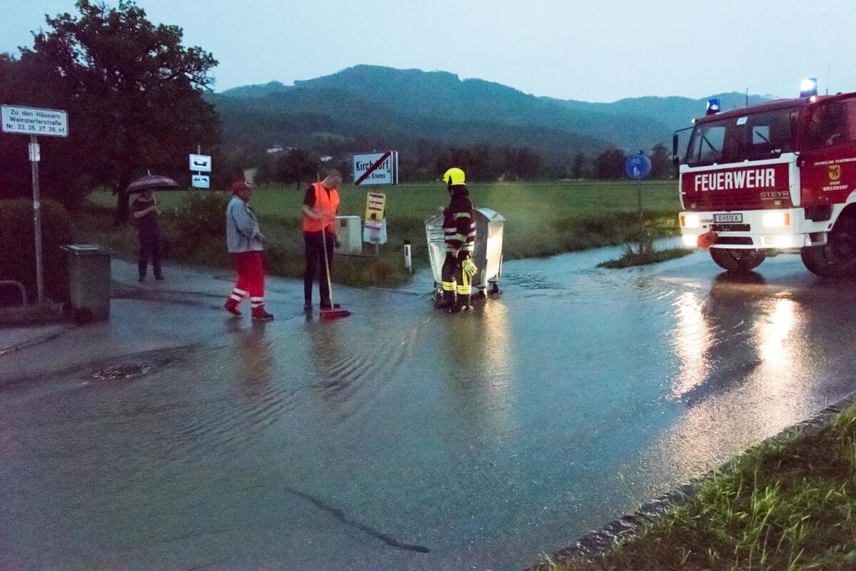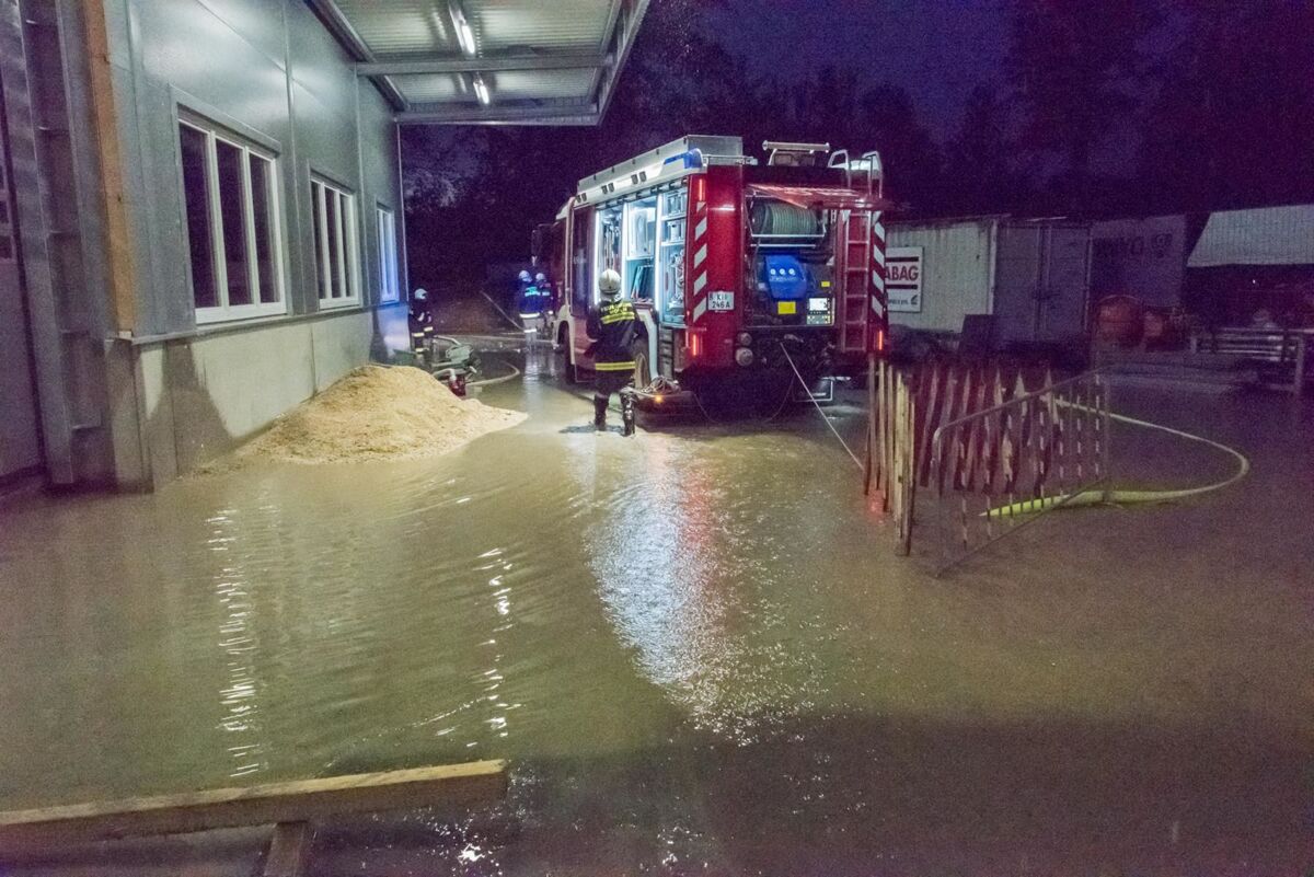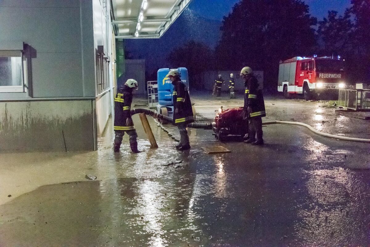 Bäche traten über die Ufer und das Wasser bahnte sich seinen Weg. Es flutete Straßen, Unterführungen sowie einige Garagen und Keller. In Hunderten Einsätzen waren die Feuerwehren des Bezirkes damit beschäftigt, das Wasser mit Sandsack-Barrieren unter Kontrolle zu bringen und die Keller auszupumpen.