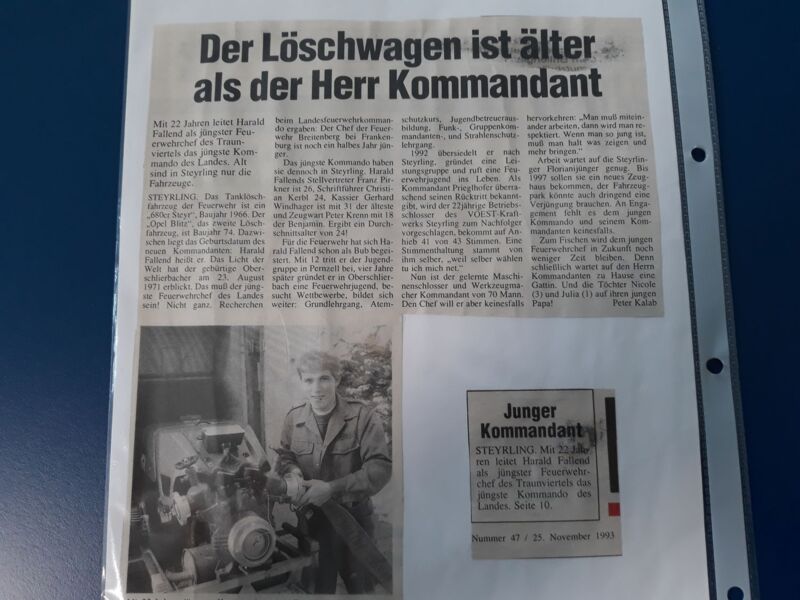 Auch herausfordernde Zeiten liegen hinter dem langjährigen Kommandanten. „Als Wasserstützpunkt hatten wir leider viele Totenbergungen – darunter auch ein Kind, das wir tot aus der Steyr bargen. Einer der schwierigsten Einsätze war ein Unfall im Dezember 1997, bei dem ein junger Kamerad tödlich verunglückte. Das in der Mannschaft aufzuarbeiten war sehr schwer“, erinnert sich der 49-Jährige. „Vor der Autobahnöffnung hatten wir auch viel mehr Einsätze auf der B138. Unser Einsatzgebiet ist leider eine Raserstrecke“, so Harald Fallend nachdenklich. Verändert habe sich auch die Arbeitsweise: „Die EDV hat zwar vieles einfacher gemacht, aber früher war alles unbürokratischer.“ und der
