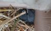 Drei Bachstelzen-Babys aus ihrem Nest unter dem Kotflügel eines Lastwagens gerettet