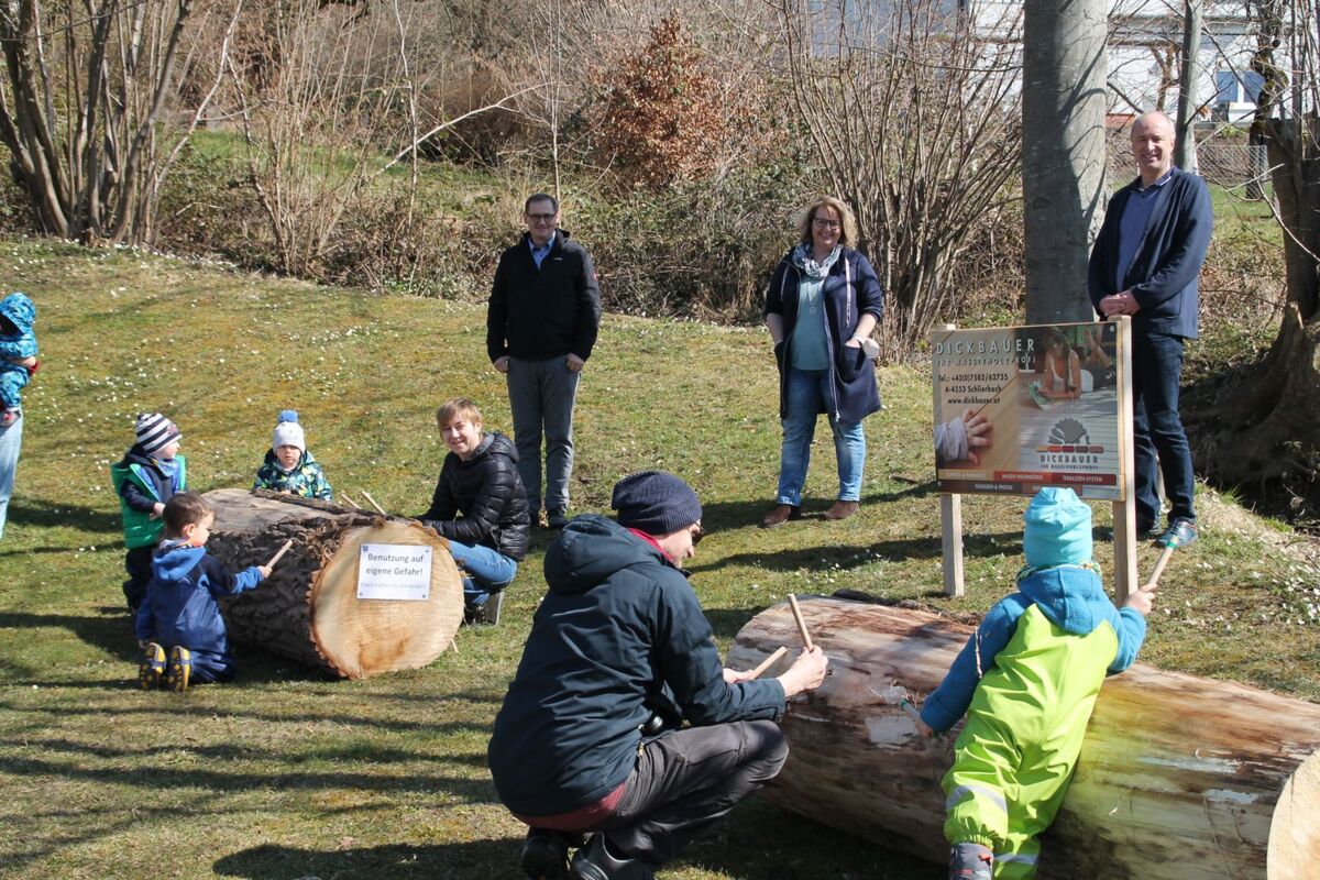 Die Landesmusikschule Kirchdorf bedankt sich bei Thomas Dickbauer (Firma Dickbauer – Ihr Massivholzprofi aus Schlierbach) für die kostenlose zur Verfügungstellung eigens zugeschnittener Baumstämme für Hocker und zum Musizieren. „Herzlichen Dank auch für die tatkräftige Unterstützung des Bauhofes der Stadtgemeinde Kirchdorf für den Aufbau“, sagt Direktor Wolfgang Homar.