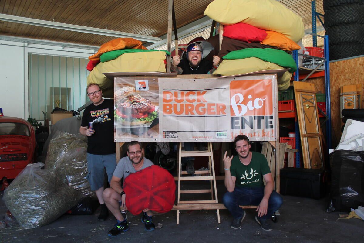 Die Freude war groß, als der Kremsmünsterer Daniel Postl hörte, dass der Red Bull Flugtag nach 2012 heuer wieder stattfindet – hat er doch damals mit einem Team daran teilgenommen und wartete seitdem auf ein Revival. Schnell waren auch die Teammitglieder gefunden. Die Flugcrew besteht aus dem Piloten Daniel Postl und den vier Helfern Patrick Tischlinger, Michael Eglseer, Robert Postl und Paul Berger – alle handwerklich geschickt. „Wir basteln gerne und verbringen viel Zeit miteinander“, erzählt Daniel Postl. Beim Plan des Flugobjektes waren sich die Teammitglieder einig: Ein Burger muss es sein, denn Daniel Postl ist Eigentümer des Burger-Restaurants McDaniels in Kremsmünster.