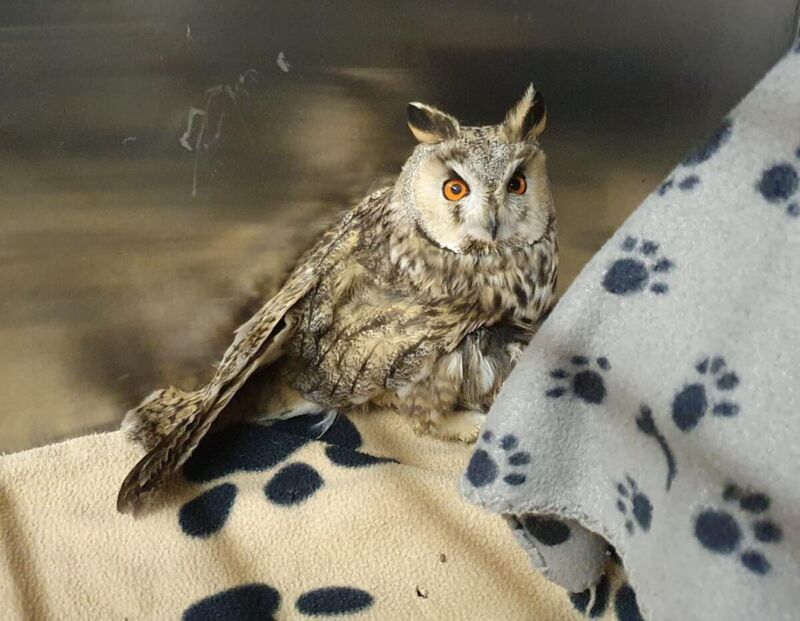 Waldohreule mit Flügelbruch im Tierparadies Schabenreith gelandet