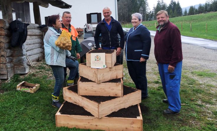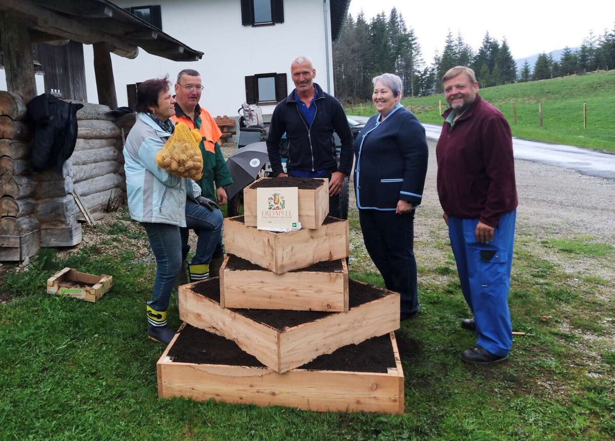 EGGLALM. Erst kürzlich wurde durch den Seniorenring und der Ortsgruppe Teichltal auf der Egglalm am Hengstpass das Projekt „Errichtung einer Erdäpfelpyramide in 994m Seehöhe“ gestartet.