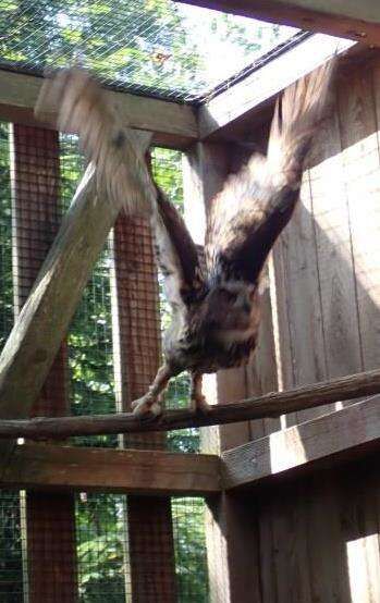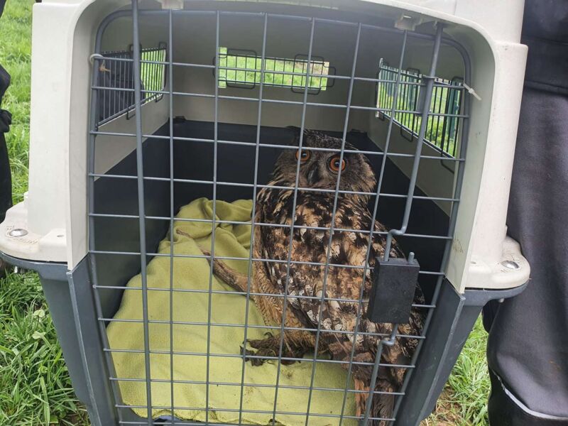 STEINACH AM ZIEHBERG. Ein verletzter Uhu landete Ende April direkt in einem Hundeauslauf des Tierheims Tierparadies Schabenreith in Steinbach am Ziehberg.