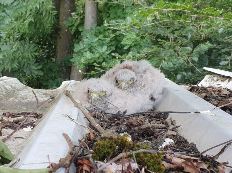 Tierrettung: Turmfalkenbabys stürzten mit Nest sieben Meter in die Tiefe