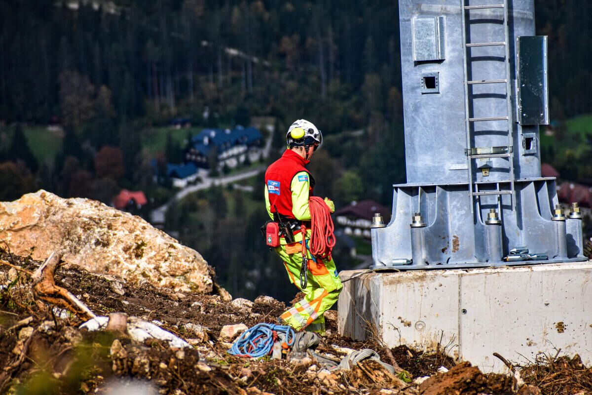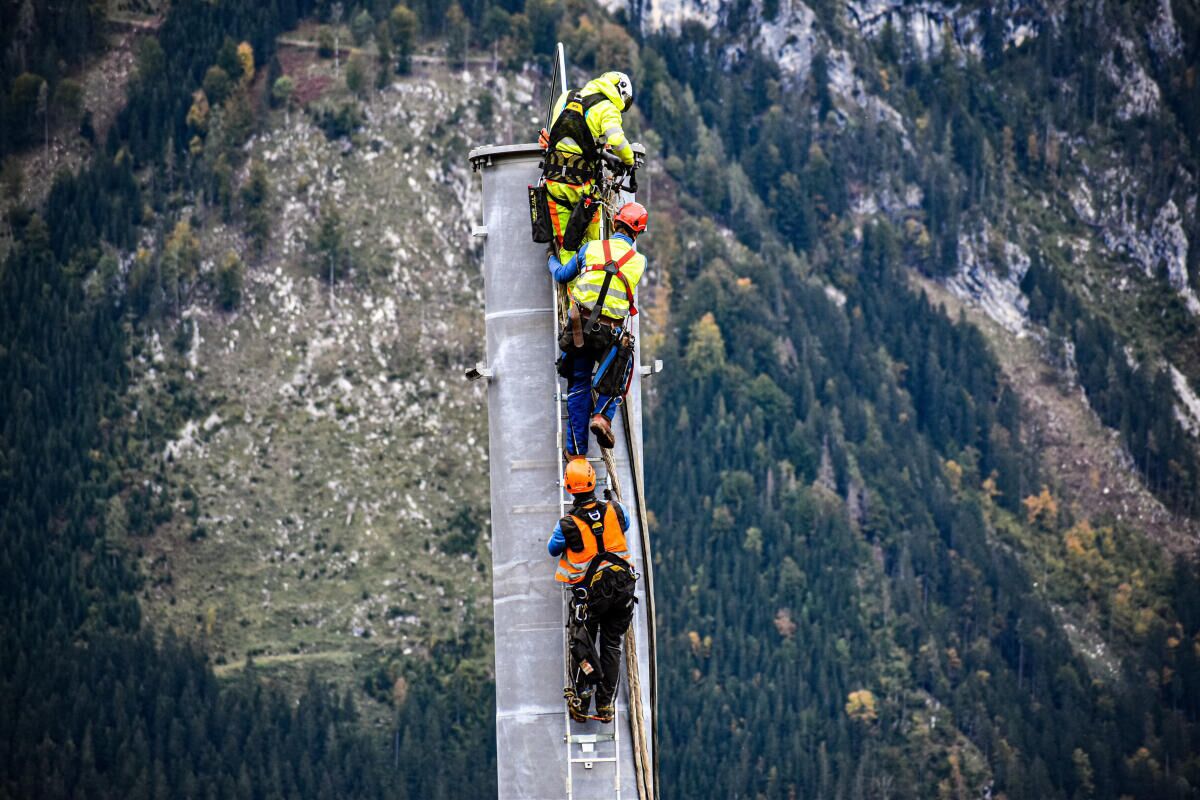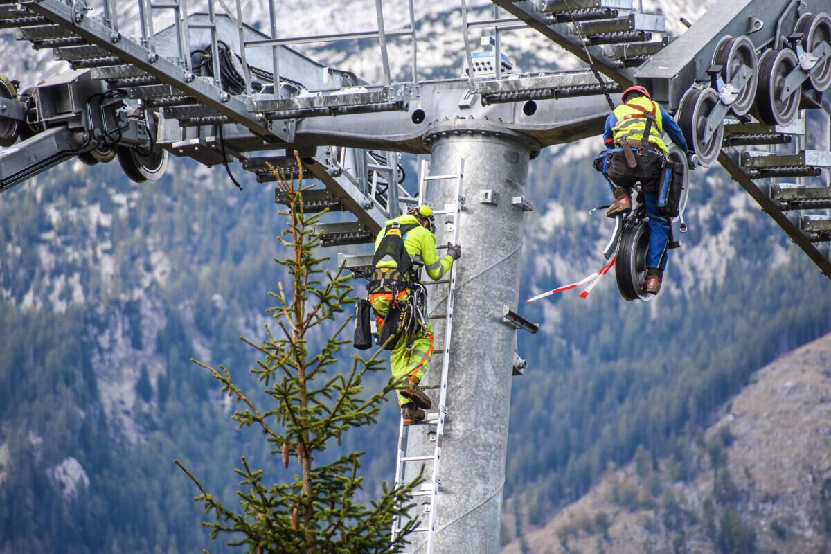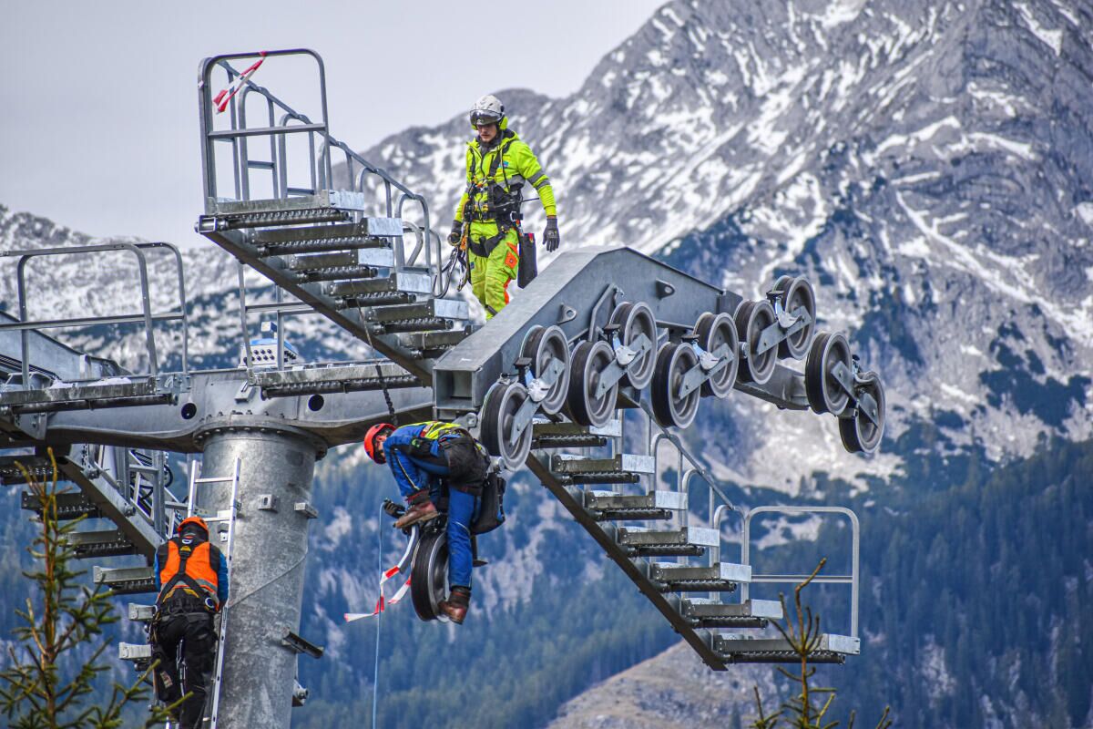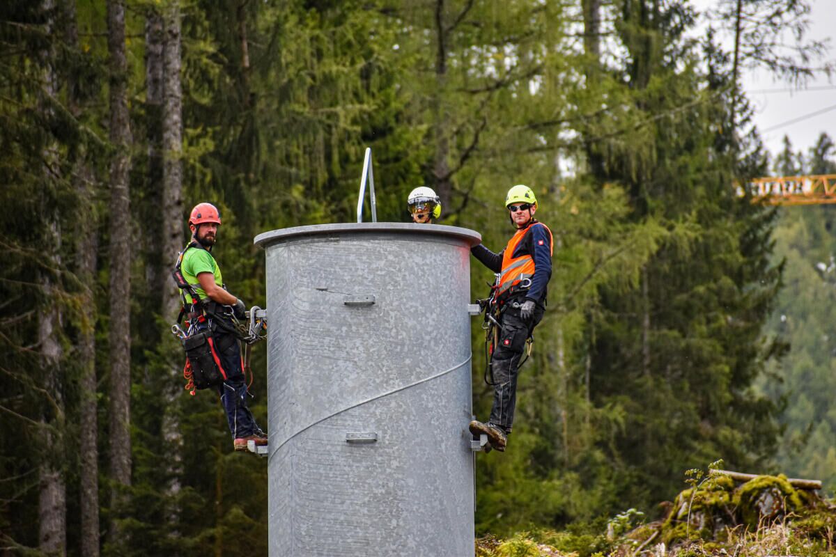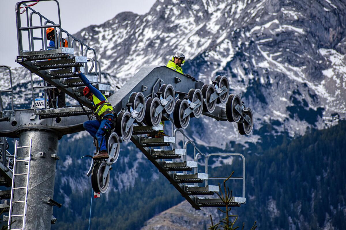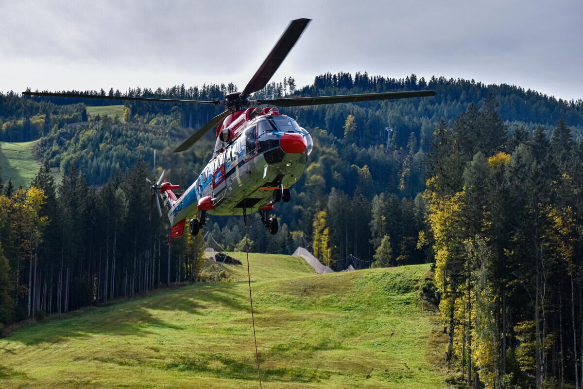 HINTERSTODER. Im Zuge des Neubaus der Hössbahn in Hinterstoder wurden am 28. September die letzten sechs der 19 Stützen an ihren Standpunkt geflogen und montiert.