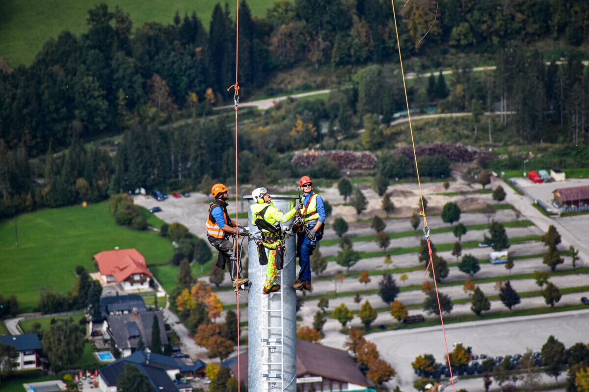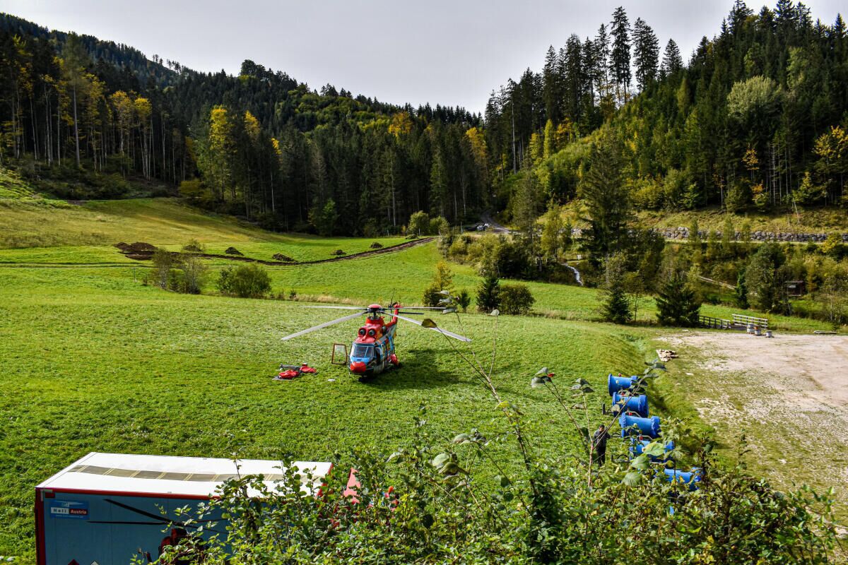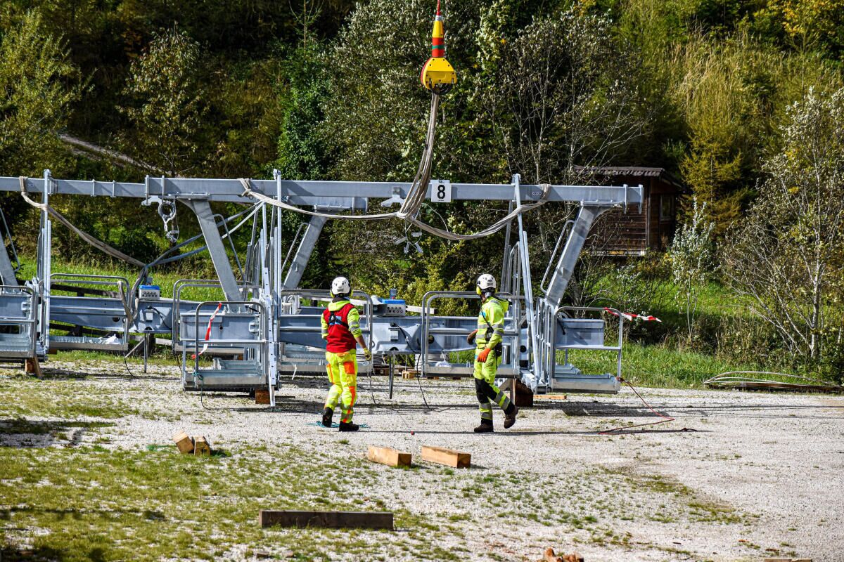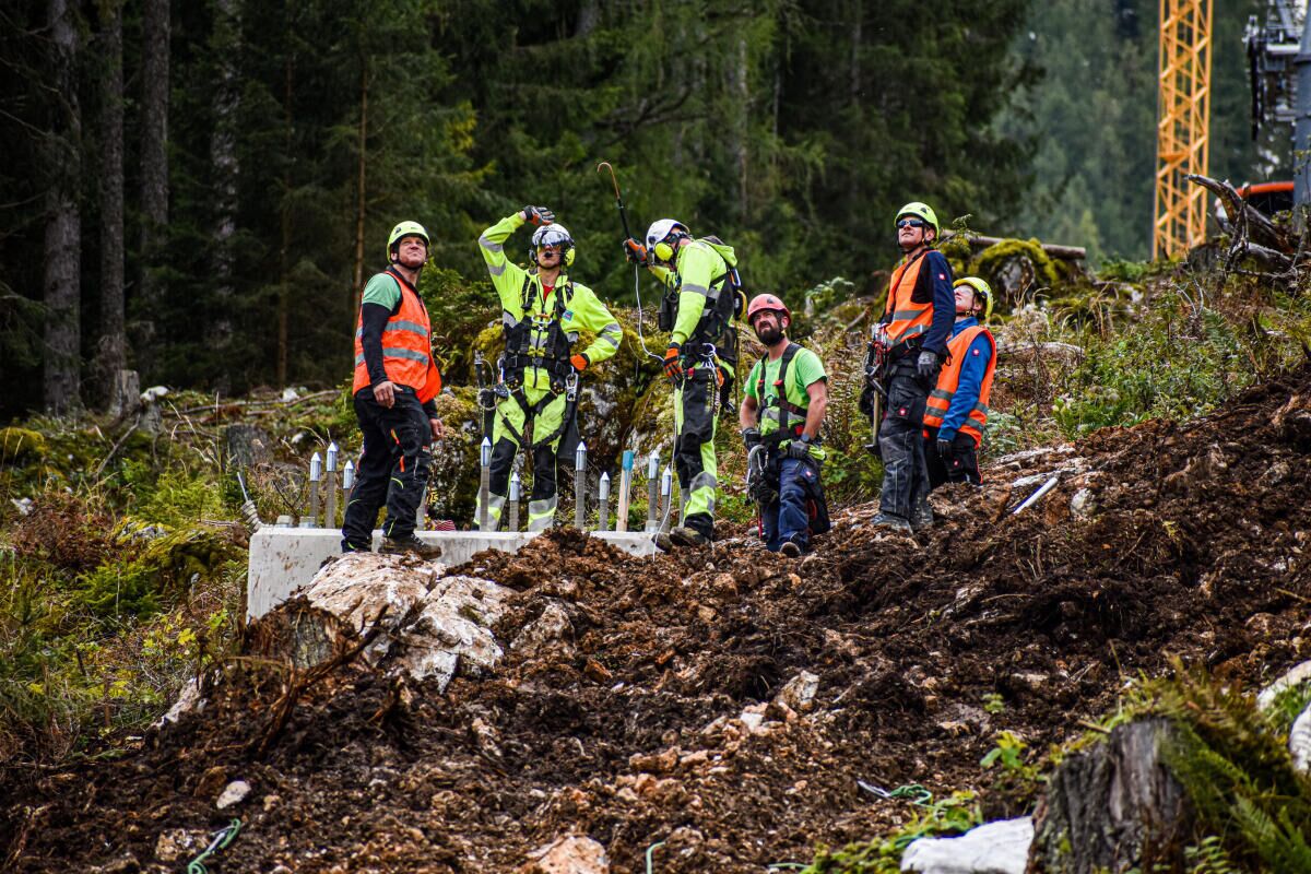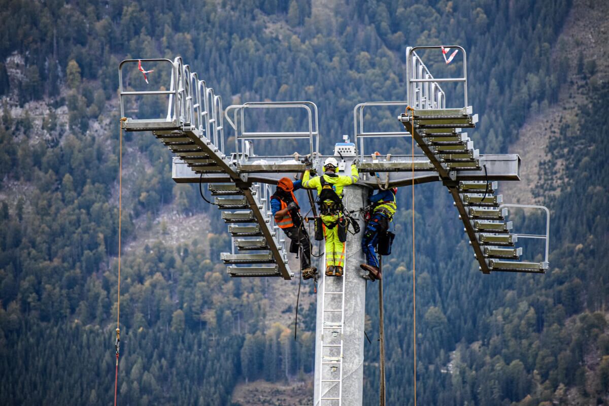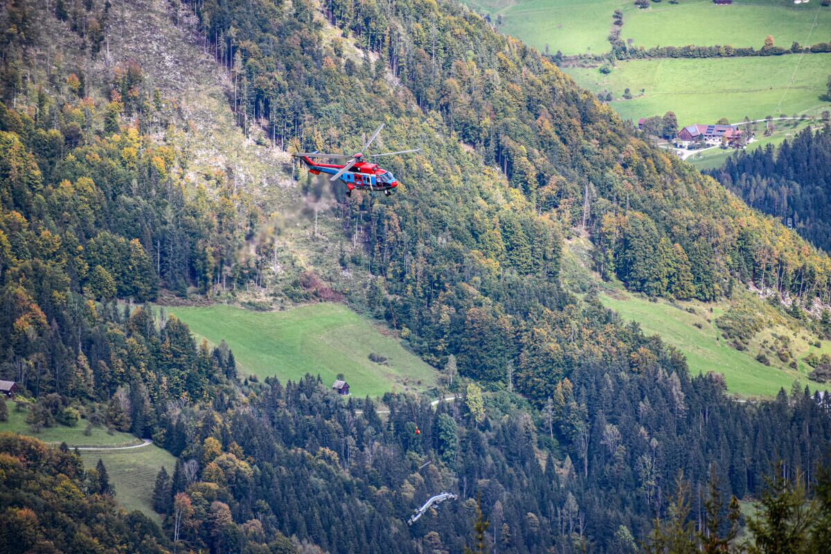 HINTERSTODER. Im Zuge des Neubaus der Hössbahn in Hinterstoder wurden am 28. September die letzten sechs der 19 Stützen an ihren Standpunkt geflogen und montiert.
