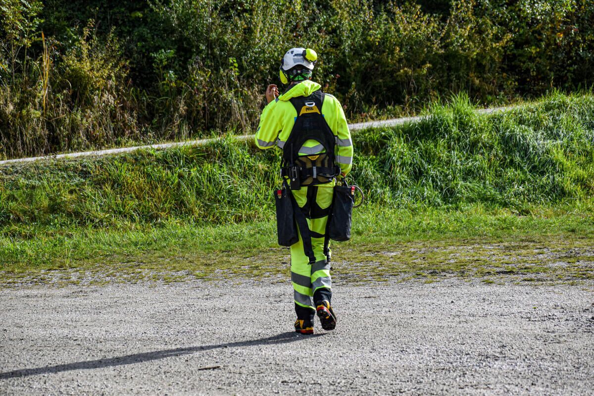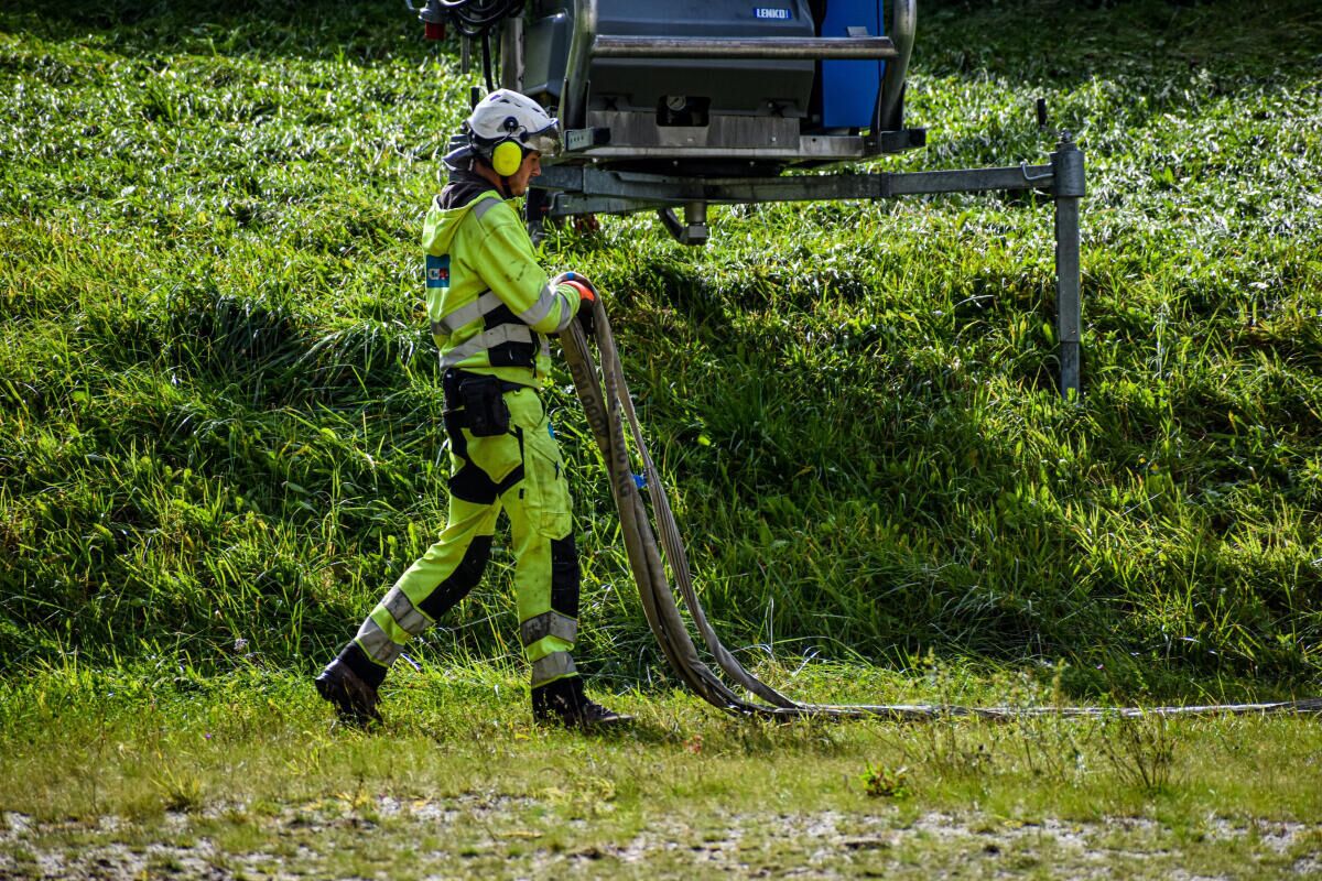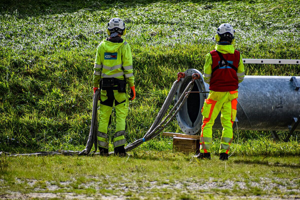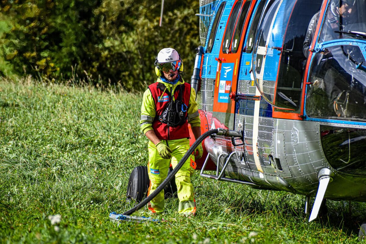 Der Größte Transporthubschrauber der Firma Heli Austria, die sogenannte „SuperPuma“ mit einer Hubkraft von circa 4.000 kg kümmerte sich um die Stützenschäfte, die „Belle 212“ um die etwas leichteren Rollenbatterien und Stützenjochs.