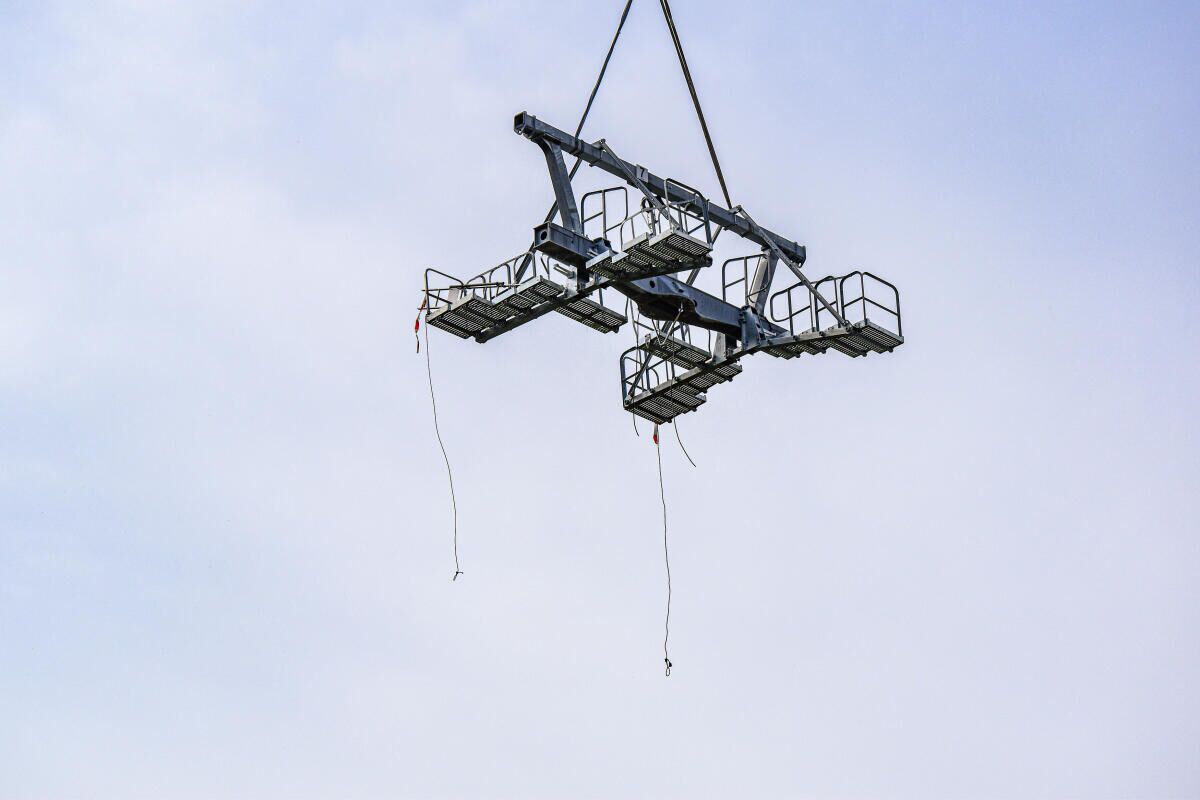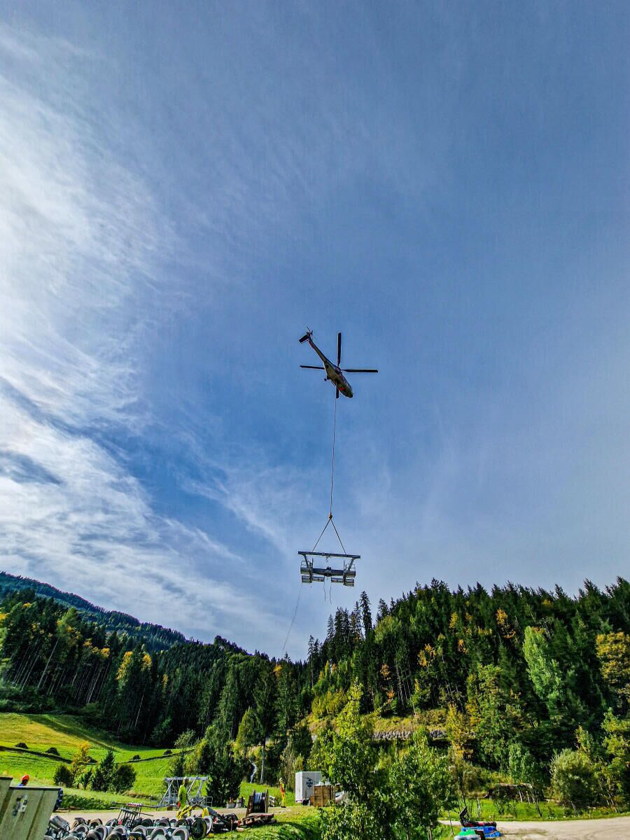 Gegen 10 Uhr morgens traf der erste Transporthubschrauber im Weltcupzielgelände der Hannes-Trinkl Weltcupstrecke ein. Nach kurzen Vorbereitungsarbeiten hob der Hubschrauber mit der ersten Stütze in Richtung der neuen Liftanlage ab, bereits nach kurzer Zeit waren drei der sechs Stützen ausgeflogen und montiert. Anschließend wurden die restlichen Stützen von einem weiteren Lagerplatz ausgeflogen und anschließend mit einem weiteren Hubschrauber des Typs „Bell 212“ fertiggestellt.