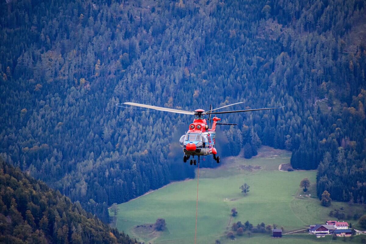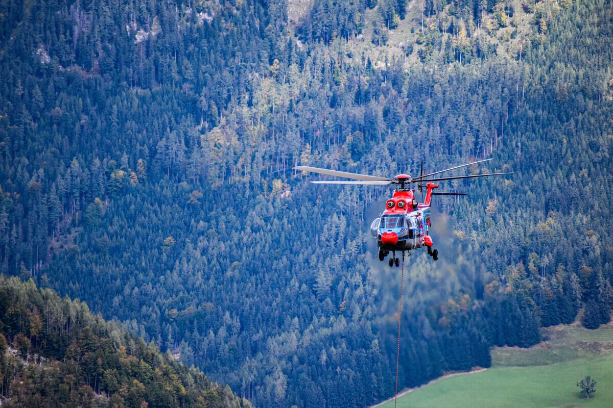 Großhelikopter bei Bau der 10er Gondelbahn in Hinterstoder im Einsatz