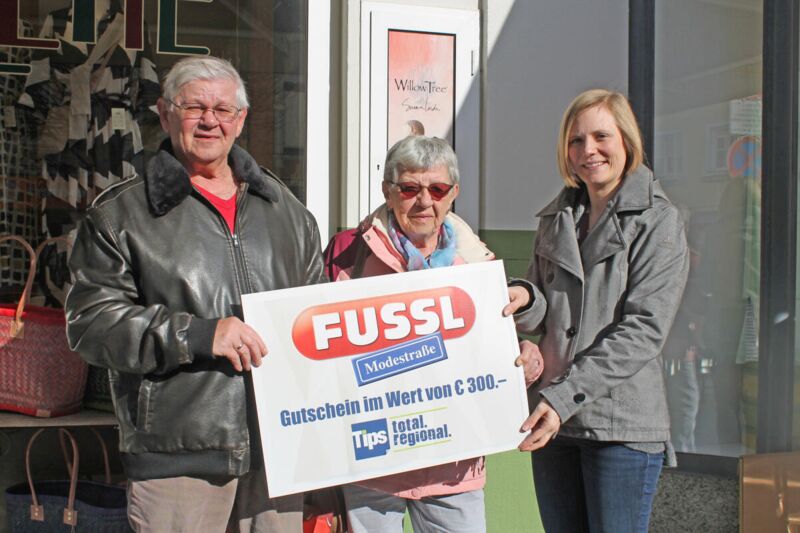 Beim Spaziergang durch Kirchdorf trafen Franz und Theresia Angerer aus Leonstein das Tips-Glücksengerl. Die Redakteurinnen Susanne Winter und Sophie Kepplinger fragten die beiden nach ihrer Lieblingszeitung. Franz Angerer brauchte nicht lange überlegen und antwortete prompt: „Tips!“ Damit hat er Modegutscheine im Wert von 300 Euro gewonnen. „Ich brauche sowieso eine neue Hose und einen Pullover“, freute sich der Pensionist und meinte weiter: „Für meine Frau ist bestimmt auch etwas dabei.“