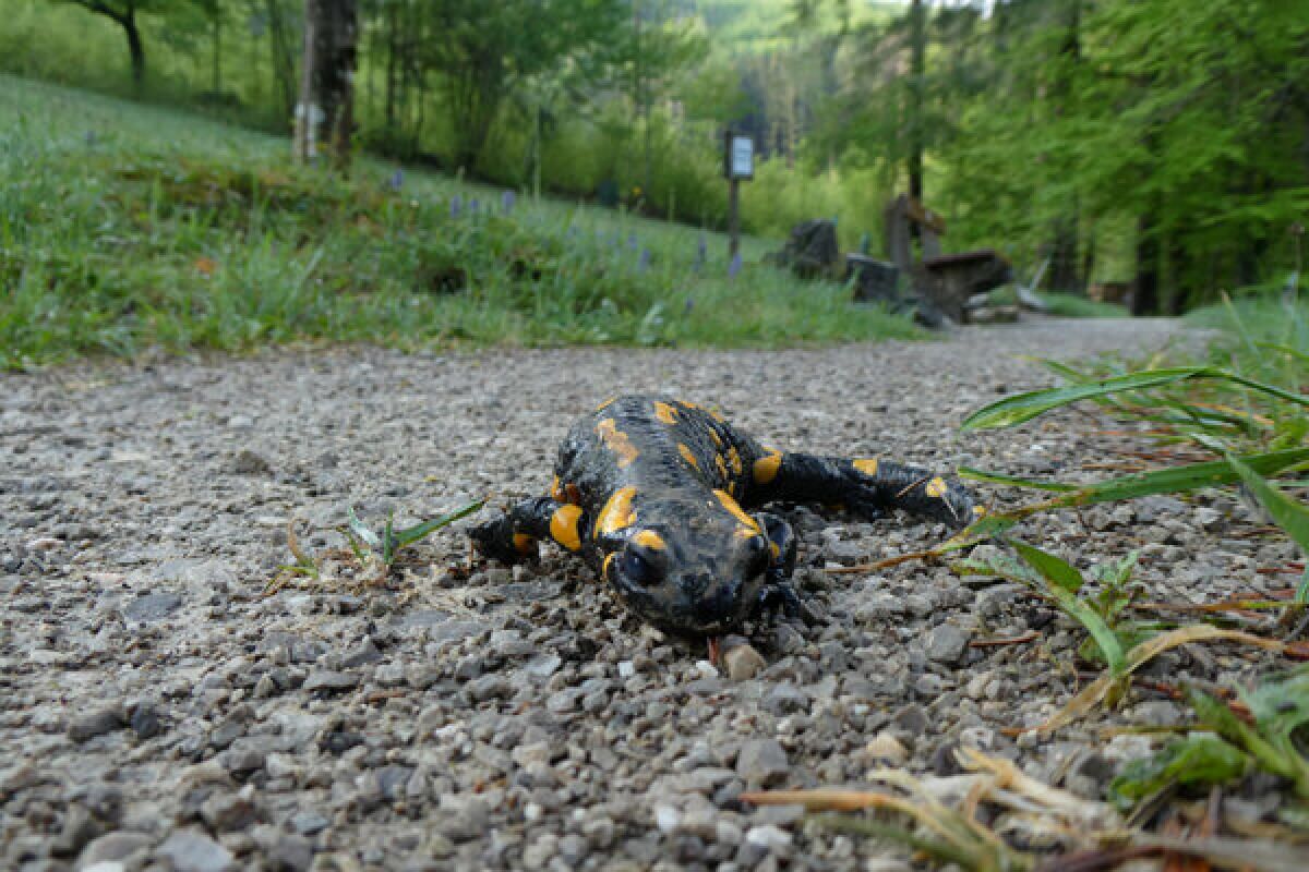 MICHELDORF IN OÖ. Die Feuersalamander machen sich jetzt verfrüht auf den Weg zu ihren Laichgewässern. Der Micheldorfer Landschaftspflegeverein „Bergma(n)dl“ appelliert zur Achtsamkeit – vor allem nachts – auf Forststraßen und bei Brunnen.
