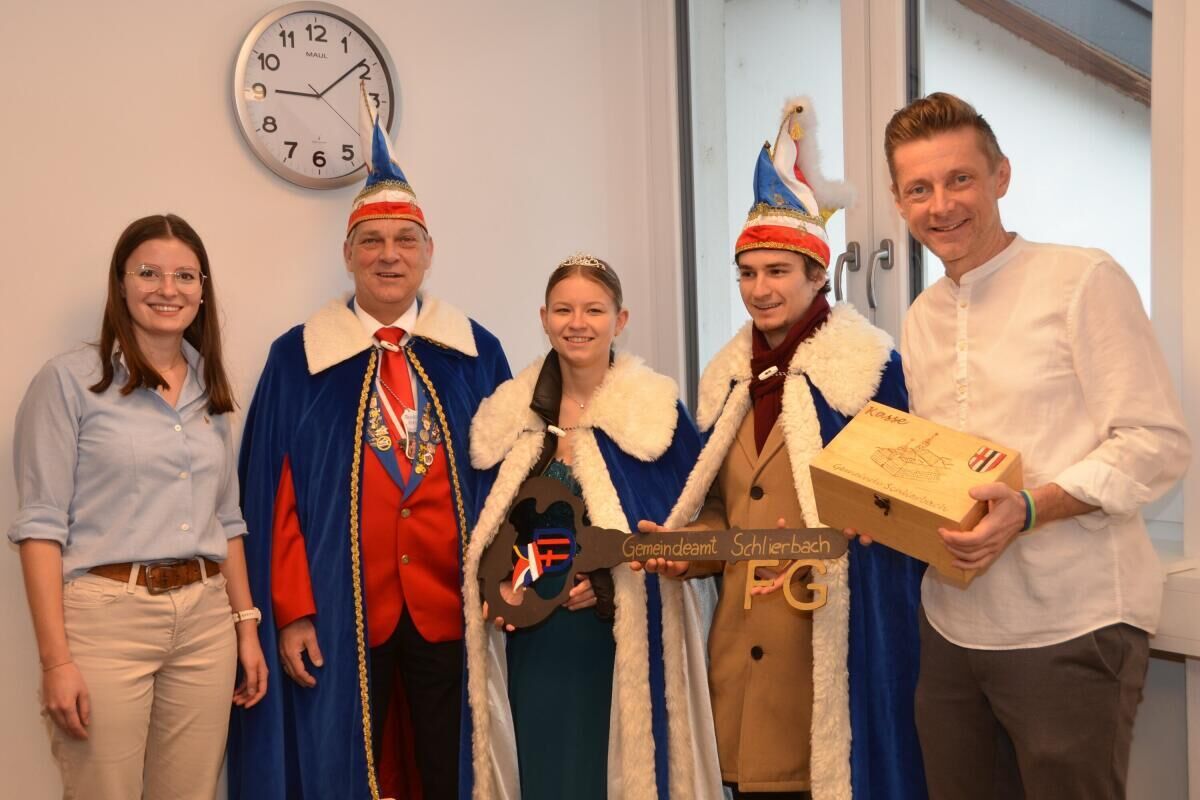 SCHLIERBACH. Am Faschingsdienstag hieß es in Schlierbach Abschied nehmen vom närrischen Regiment. Das Prinzenpaar der Faschingsgilde Schlierbach, Prinzessin Alina und Prinz Jay, übergab den Gemeindeschlüssel und die Gemeindekasse wieder an VP-Bürgermeister Mario Pramberger.