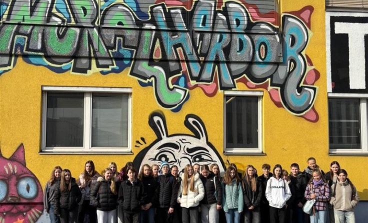 Der Kreativzweig machte sich auf den Weg zum Mural Harbour im Linzer Hafen. Dort erhielten die Jugendlichen bei einer Führung Einblicke in die internationale Street-Art-Szene. Im Anschluss konnten sie selbst kreativ werden und erste Erfahrungen im Graffiti-Sprühen sammeln.