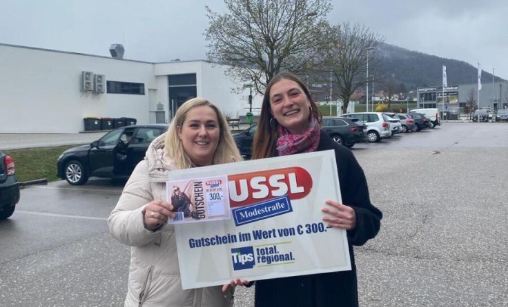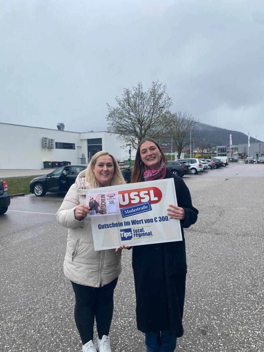 Hinweis: Der 100-Euro-Gutschein der Fussl Modestraße, der im Bezirk Kirchdorf online verlost wird, ist nur nach telefonischer Vereinbarung mit der zuständigen Redakteurin Maya Matschek (+43 676 5026785) in der Tips-Geschäftsstelle Kirchdorf (Simon-Redtenbacher-Platz 9), mit der Gewinnbenachrichtigung und einem Lichtbildausweis abzuholen.