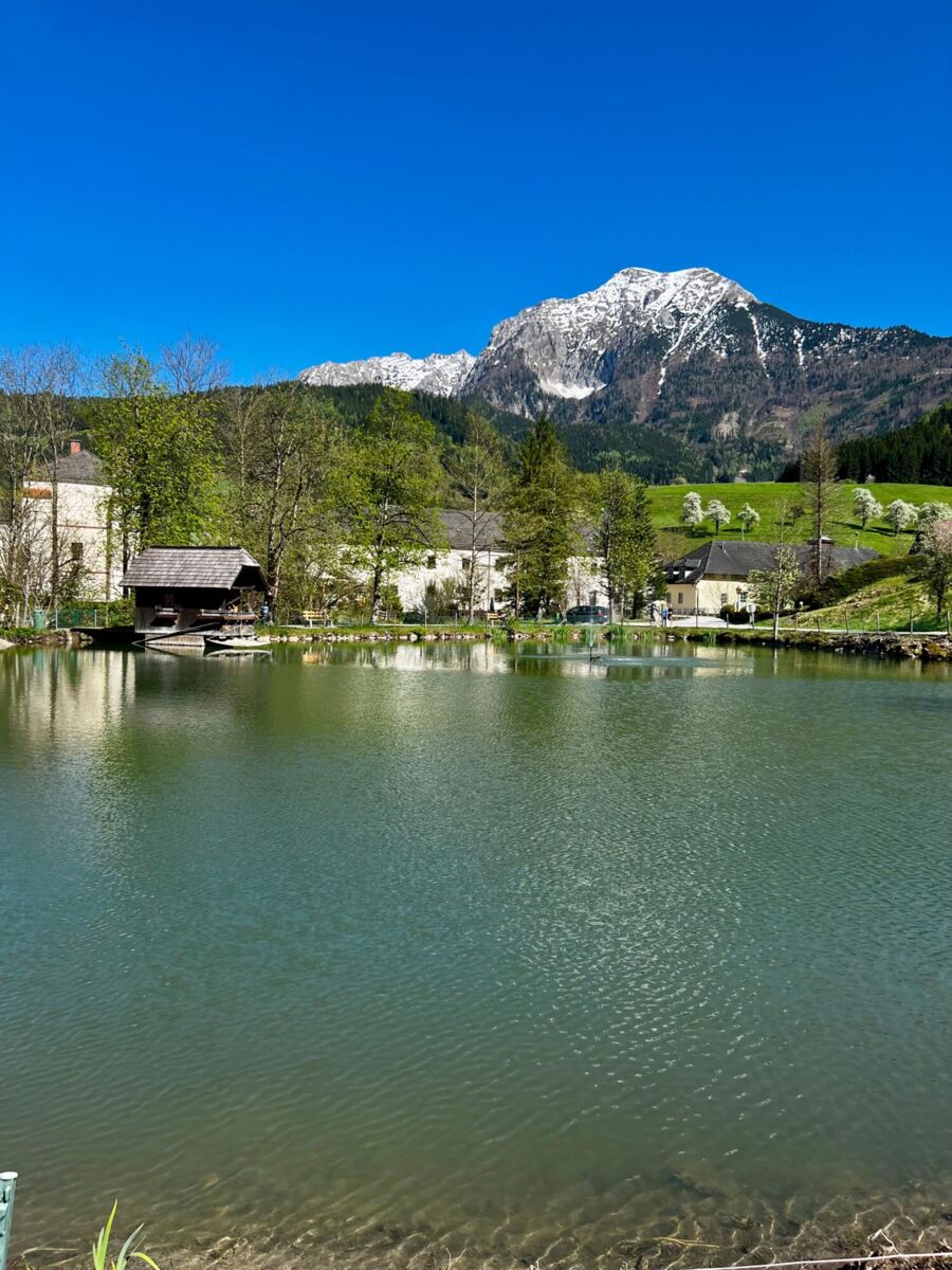 SPITAL AM PYHRN. Der Stiftsteich hinter dem „Dom am Pyhrn“ in Spital am Pyhrn ist ein wahres Juwel. Er ist ein wunderschönes Idyll für Gäste und Einheimische. Vor allem, um die Ruhe und die umliegende Bergkulisse auf den Holzbänken und der Liege zu genießen, lohnt sich ein Besuch.