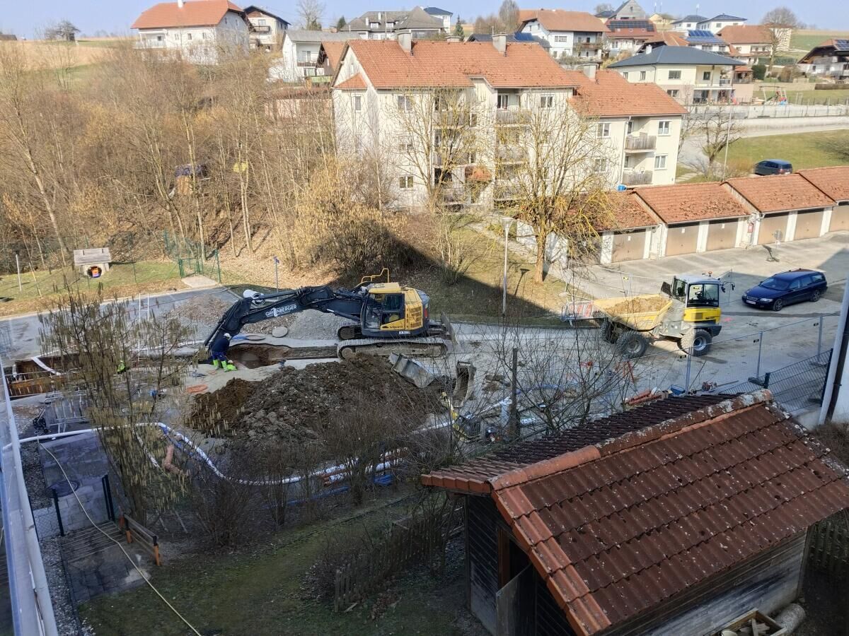 Der Startschuss für das Projekt fiel im Februar 2026 mit der Versetzung eines Containers. Im März folgte die Umlegung von Kanal-, Wasser- und Stromleitungen. Diese Arbeiten gestalten sich laut Gemeinde aufgrund der tiefen Lage des Kanals sowie bislang unbekannter Leitungsführungen und instabiler Bodenverhältnisse als herausfordernd.