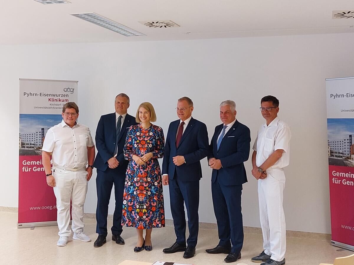 Schon zu Beginn wird deutlich, dass es hier um mehr geht als nur um ein neues Gerät. „Was wir heute präsentieren, ist in mehrfacher Hinsicht ein Beweisstück dafür, wie wir unser Gesundheitssystem weiterentwickeln“, betont Landeshauptmann Thomas Stelzer (ÖVP) in seinem Eingangsstatement. Es gehe darum, „die bestmögliche technologische Entwicklung auch in den Regionen zur Verfügung zu stellen“.