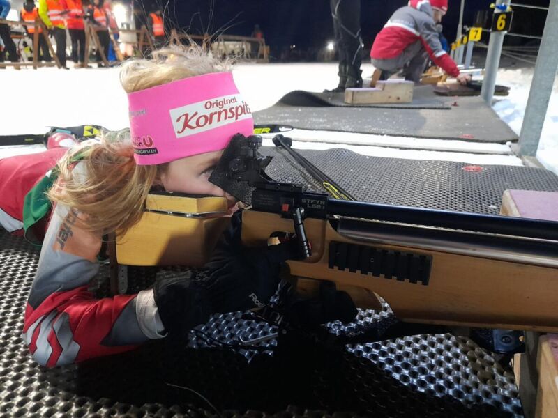 Der Sprintbewerb am Samstag war von teilweise starken Sturmböen geprägt und bereitete den jungen Biathleten schwierige Verhältnisse auf dem Schießstand. Timon Forster (S14m) und Alberto Allan (S13m) holten sich am Samstag beim Sprintbewerb der ÖM (Österreichische Meisterschaft) Gold. Silber ging an Johannes Mühlbacher (S13m), Bronze sicherten sich Luisa Baumschlager (S14w) und Jakob Kniewasser (S13m). Beim Sprintbewerb des AC (Austria Cup) erreichte Marie Kniewasser (K12w) den zweiten Platz, Elias Gstir (K11m) den vierten Platz. Ein Highlight für die jüngsten Kids: Das Sprintrennen am Samstagabend fand bei Flutlicht statt.