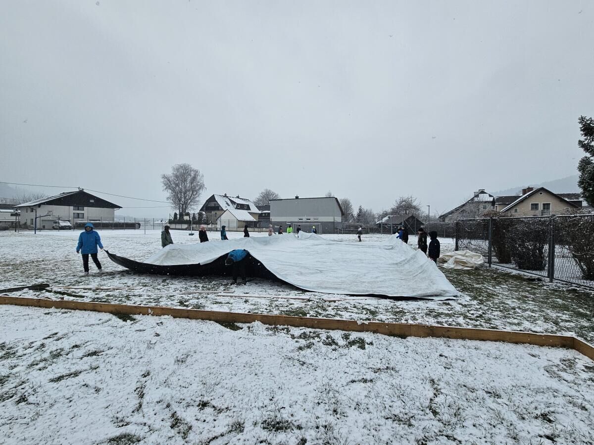 Mittelschüler in Windischgarsten bauten eigenen Eislaufplatz für Wintersport