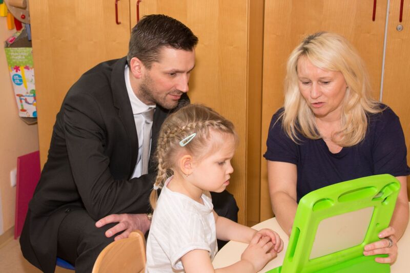 Damit kaufte der Kindergarten ein iPad als akustische Kommunikationsunterstützung, um Auffälligkeiten und Sprachdefiziten entgegenzuwirken. Laut einer Studie liegen bereits bei jedem achten Kind im Alter von fünf bis 14 Jahren Störungen bei der Sprachentwicklung vor. Mithilfe lernrelevanter Apps erlernen die Kleinkinder spielerisch den richtigen Klang eines Wortes. “Ein herzliches Danke an das Zementwerk für diese großzügige Spende. Alleine konnten wir den Betrag für das iPad nicht aufbringen“, so Christina Unterthurner, Einrichtungsleiterin des heilpädagogischen Kindergartens.