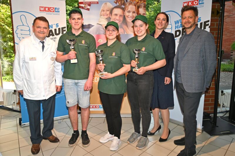 Drei Mädchen und acht junge Burschen stellten sich der Konkurrenz und hatten unter Zeitdruck eine ganze Reihe von komplexen Aufgaben zu bewältigen. So mussten sie unter anderem Fleisch grob und fein zerlegen, eine Schweinsschulter verkaufsfertig präsentieren, Sülze und Frankfurter herstellen, küchenfertige Erzeugnisse sowie eine Aufschnitt-, Schinken-, Speck- und Bratenplatte produzieren und entsprechend dekorativ präsentieren. Landesinnungsmeister Willibald Mandl zeigte sich erfreut über die vielen jungen Talente im Lebensmittelgewerbe, die einen Leistungs- und Ausbildungsnachweis beim Landeslehrlingswettbewerb erbracht haben.