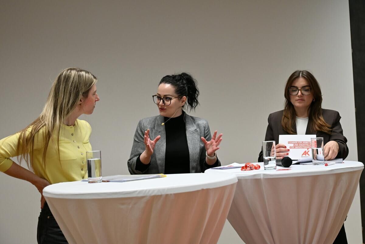 Im Anschluss an den Vortrag fand eine Podiumsdiskussion statt. Neben Laura Fröhlich nahm auch Laura Wiednig, Leiterin der Stabstelle Frauen- und Gleichstellungspolitik der Arbeiterkammer Oberösterreich, daran teil. Dabei wurde diskutiert, welche strukturellen und politischen Maßnahmen notwendig sind, um die unbezahlte Sorgearbeit gerechter zu verteilen und Frauen nachhaltig zu entlasten.