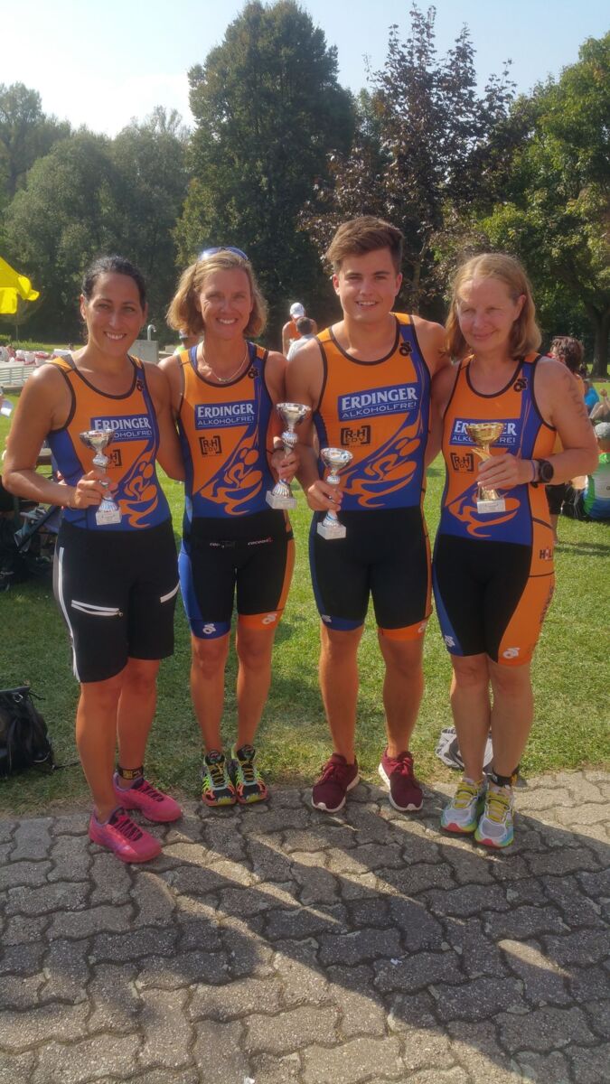 Die Tri Team PokalgewinnerInnen: Margot Pfeiffer (2., W40), Elke Schiebl-van Veen (1., W50), Valentin Neuhauser (2., Junioren), Willis Haiderer-Pils (2.,W55).