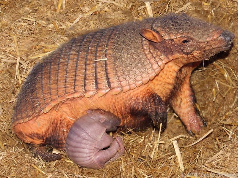 KRENGLBACH (APA) - Im Zoo Schmiding in Krenglbach sind insgesamt drei Gürteltier-Babys mit ihren zwei Müttern zu sehen. Der Nachwuchs wurde erst vor sechs Tagen geboren.
