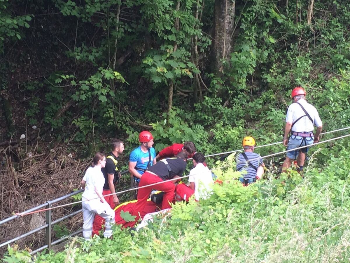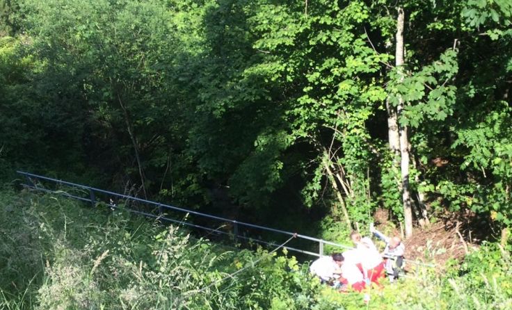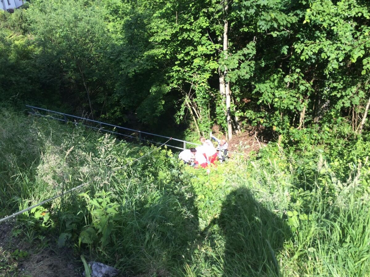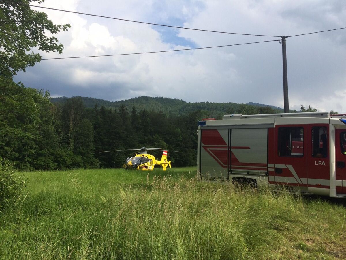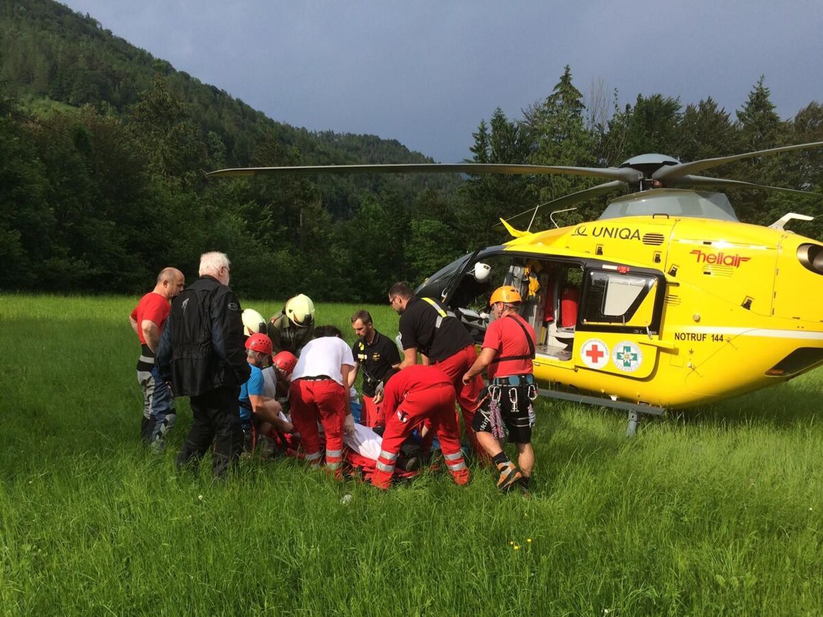 Ein Motorradlenker verlor in einer Linkskurve die Herrschaft über sein Fahrzeug und prallte gegen eine Leitschiene. Der Lenker wurde in weiterer Folge über eine steile Böschung geschleudert, wo er sich in einem Geländer verfing. Beim Eintreffen am Einsatzort wurde ein völlig demoliertes Motorrad vorgefunden, woraus eine größere Menge an Betriebsmittel ausfloss. Die verletzte Person wurde nach der Erstversorgung durch den Notarzt gemeinsam mit der Bergrettung aus dem Straßengraben gerettet und dem Team des Christophorus Notarzthubschraubers übergeben. Die Feuerwehr band das ausgeflossene Betriebsmittel und säuberte die Straße.