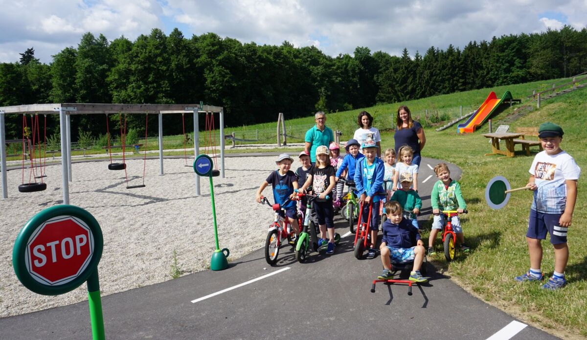 Die Verkehrszeichen hat die Elterngemeinschaft bereitgestellt. Nun wurde die markierte Strecke von den Kindern mit ihren Fahrrädern in Betrieb genommen. Bis zu 20 Kindergarten- und Volksschulkinder nutzen heuer die Ferienbetreuung im Kindergarten, die jeweils drei Wochen ab Ferienbeginn und gegen Ferienende mit individuellen Öffnungszeiten angeboten wird. Ein Fixpunkt im Beschäftigungsprogramm ist natürlich die Nutzung des Spielplatzes.