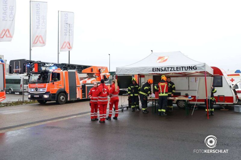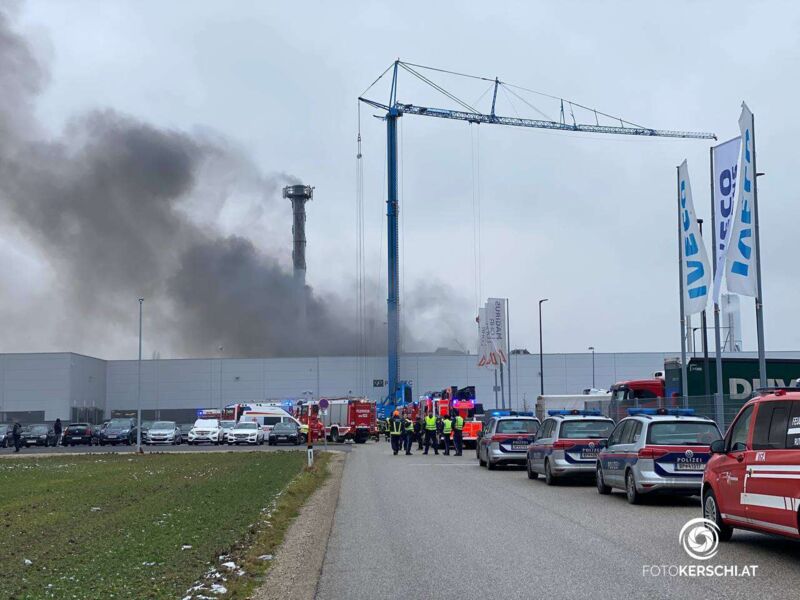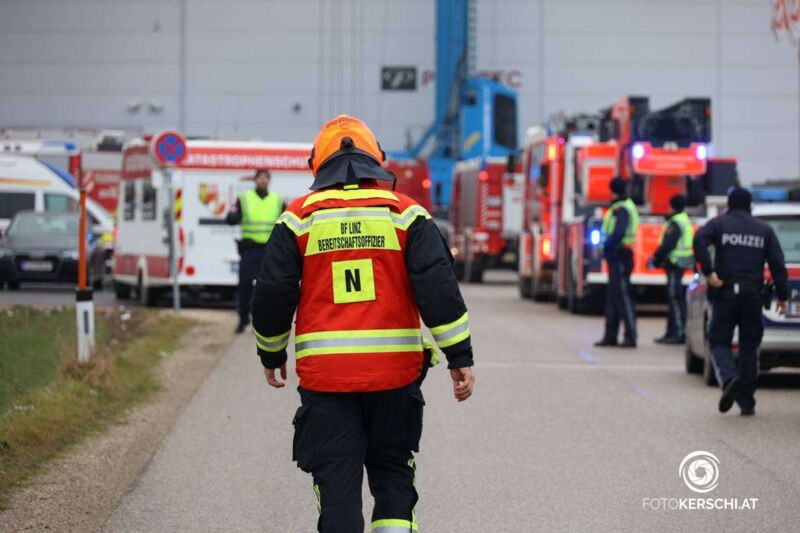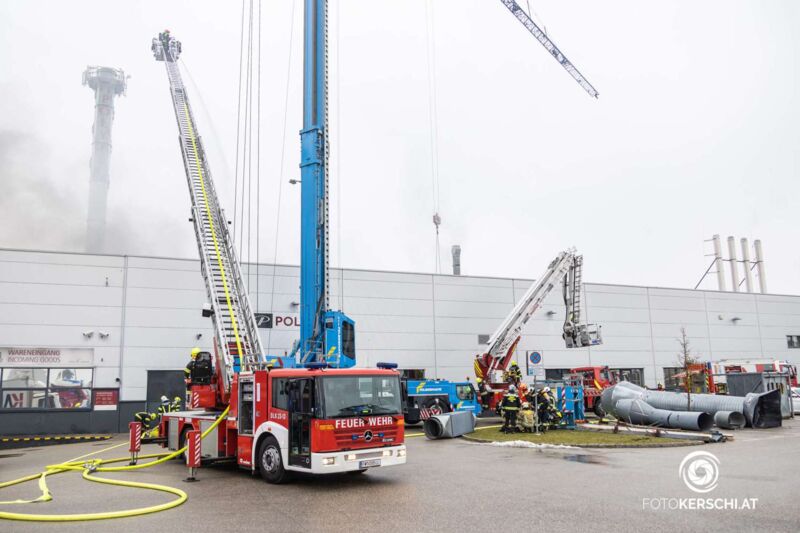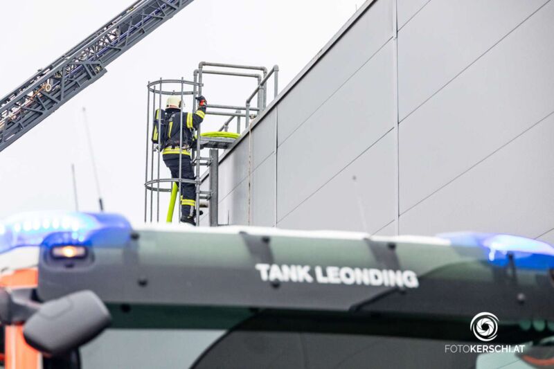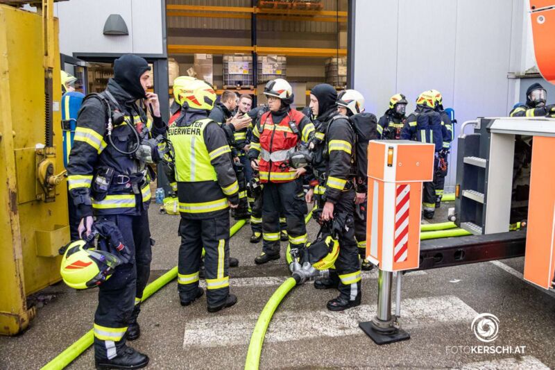 HÖRSCHING. Großalarm Dienstagnachmittag für die Feuerwehr wegen eines Brandes in einem Gewerbebetrieb in Hörsching.
